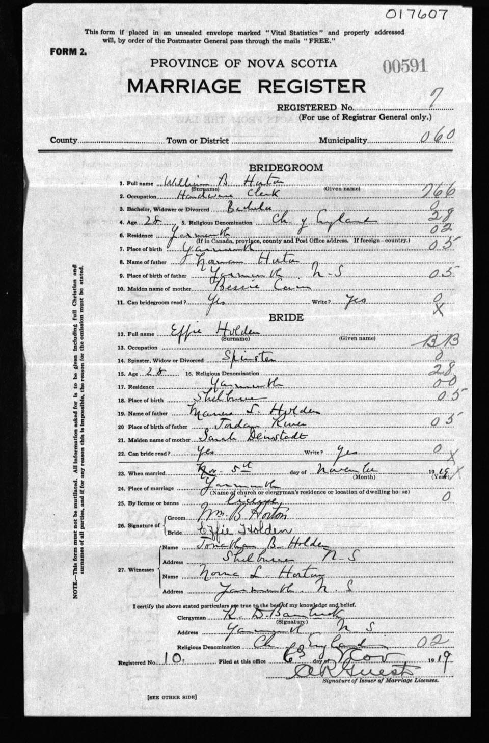 Registration: Year: 1919 number: 17607