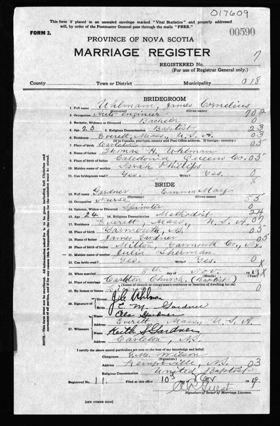 Registration: Year: 1919 number: 17609