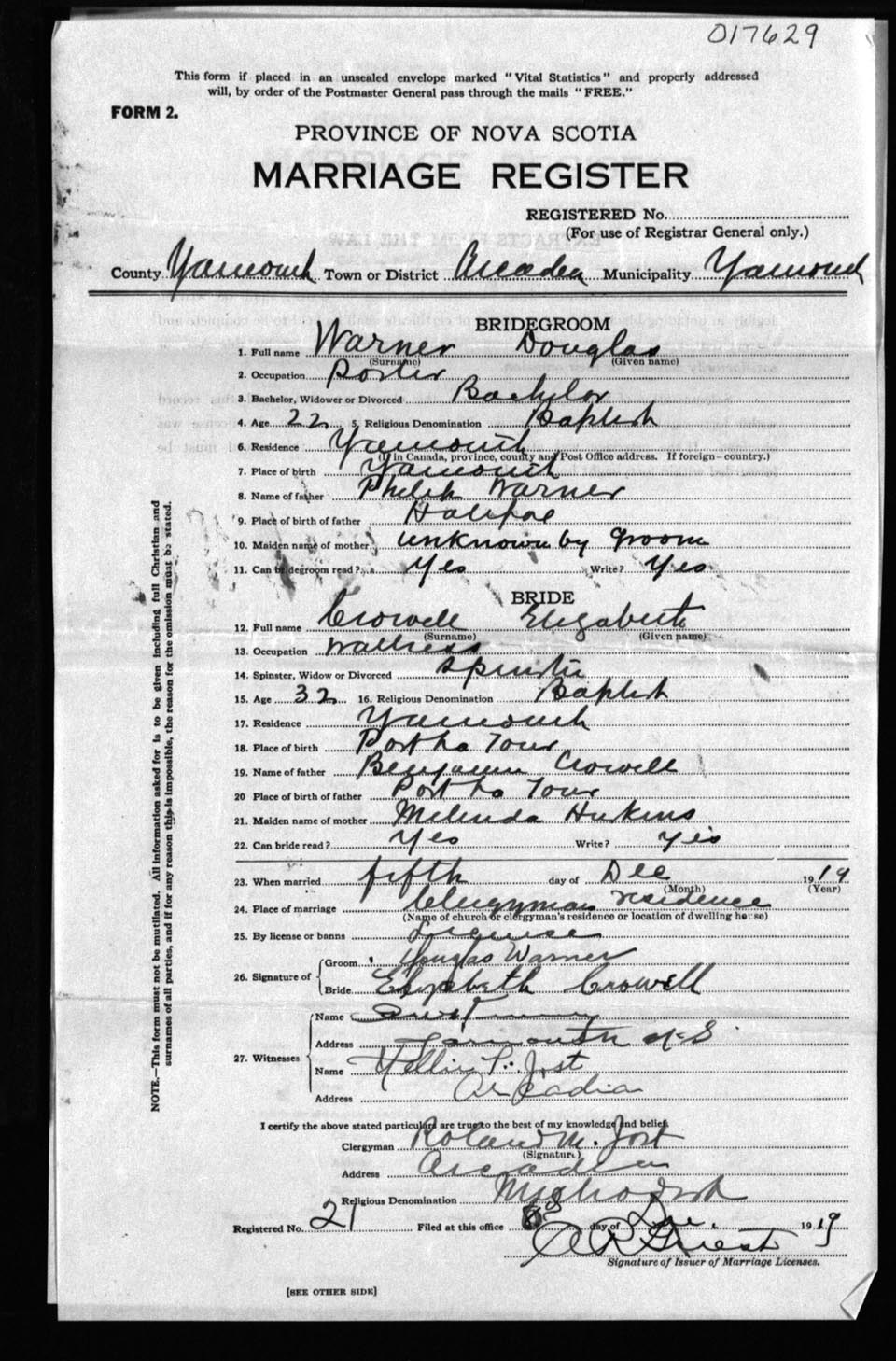Registration: Year: 1919 number: 17629