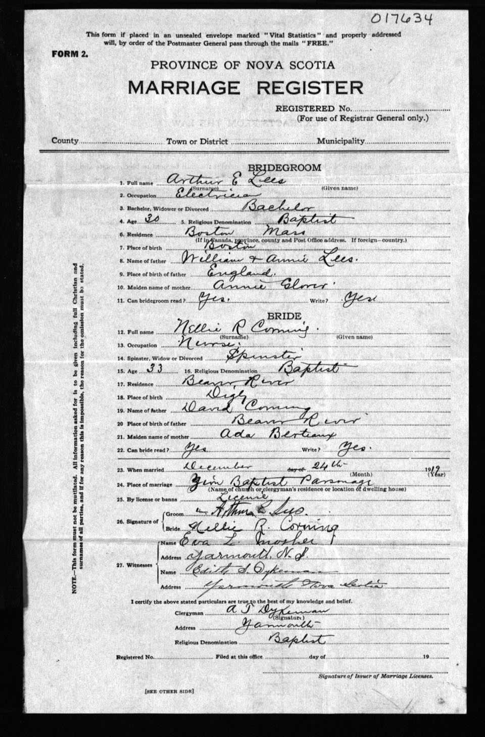Registration: Year: 1919 number: 17634