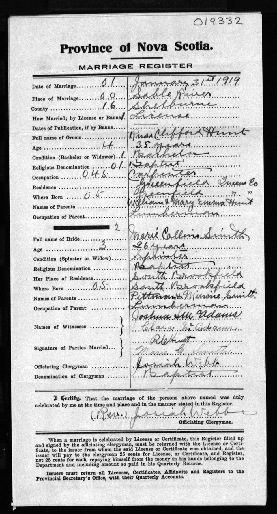 Registration: Year: 1919 number: 19332
