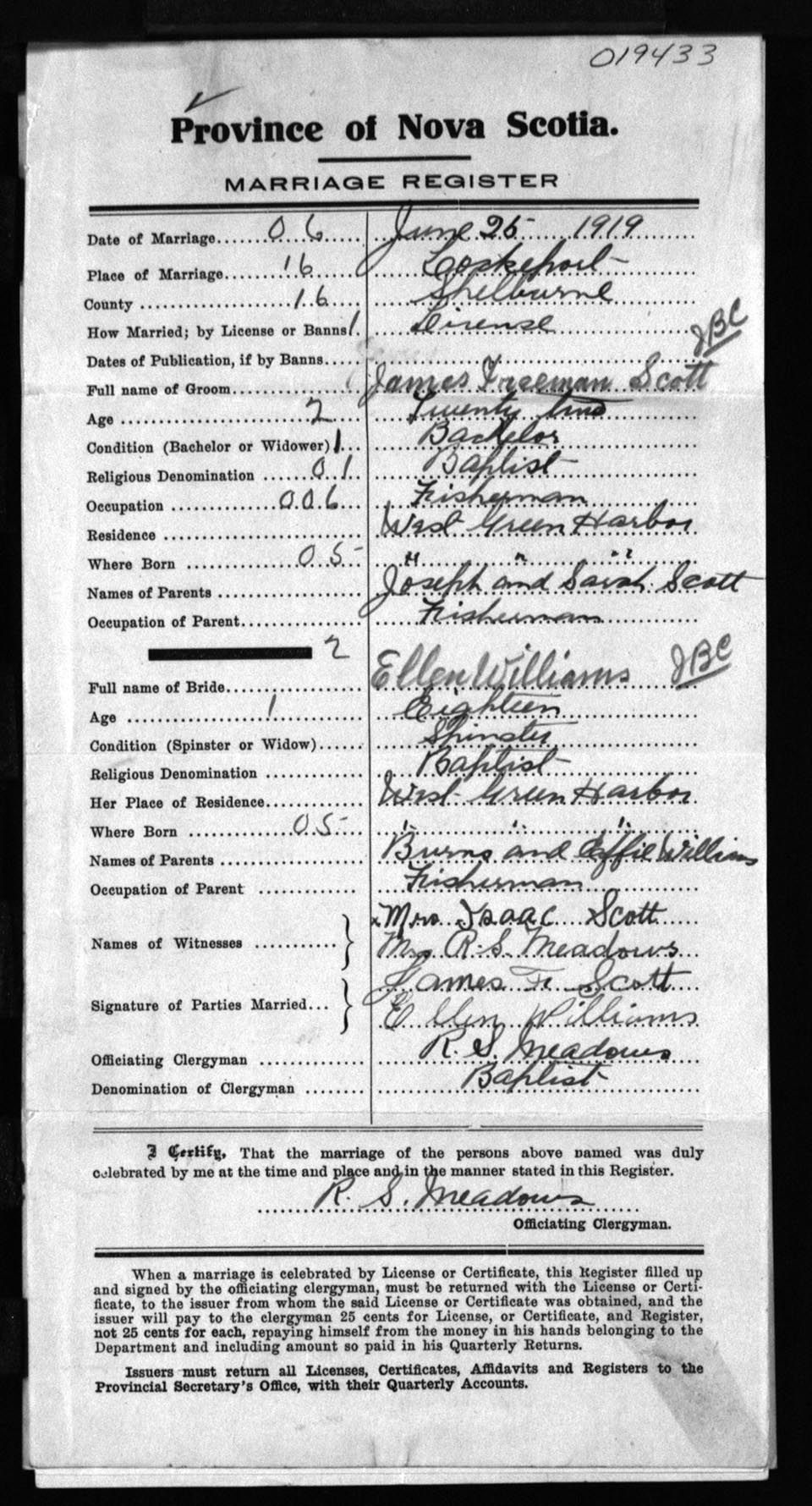 Registration: Year: 1919 number: 19433