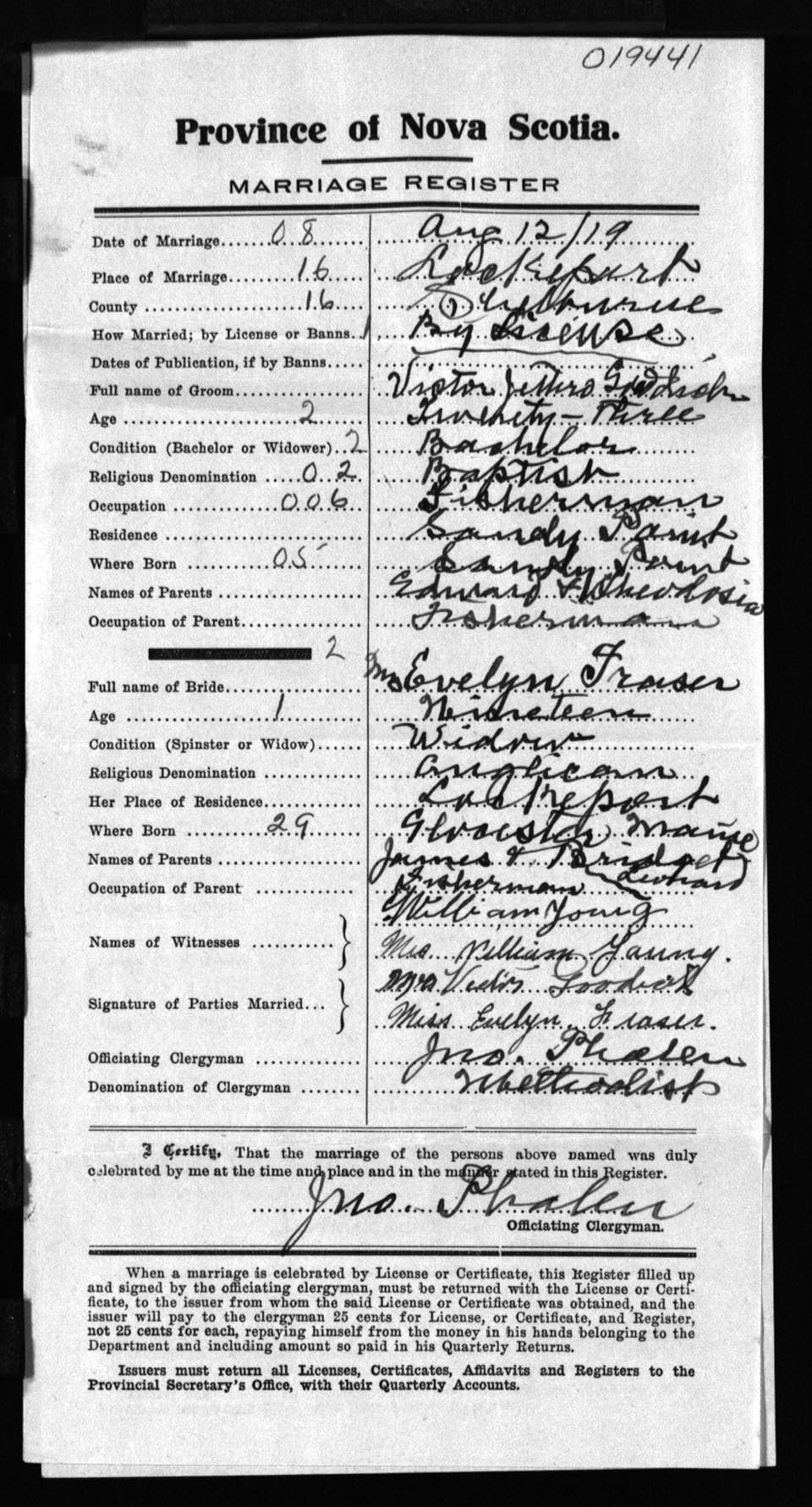 Registration: Year: 1919 number: 19441