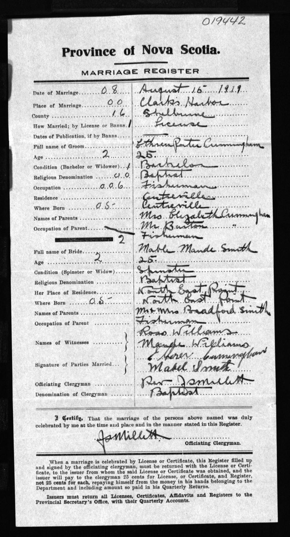 Registration: Year: 1919 number: 19442