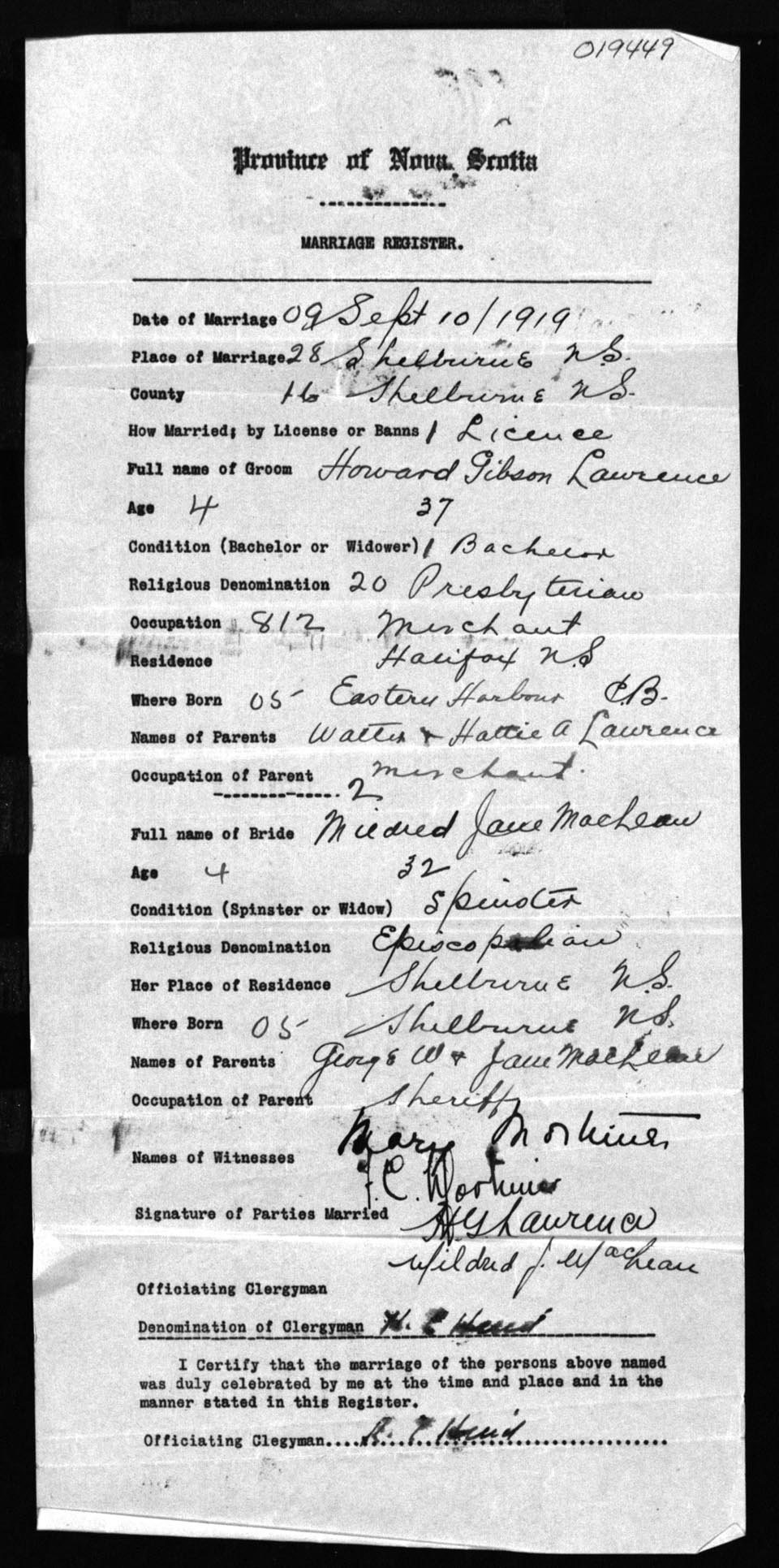 Registration: Year: 1919 number: 19449