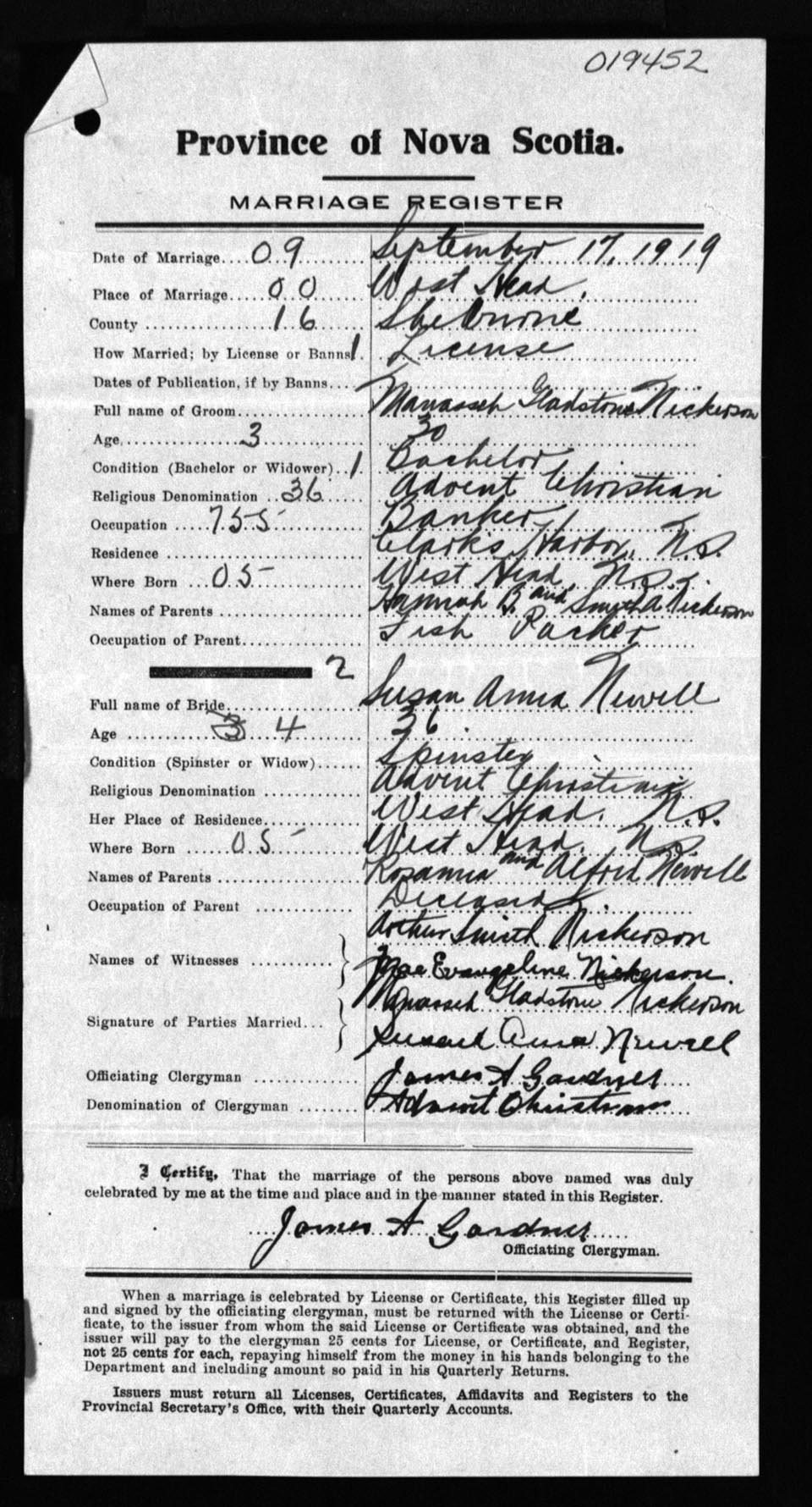 Registration: Year: 1919 number: 19452