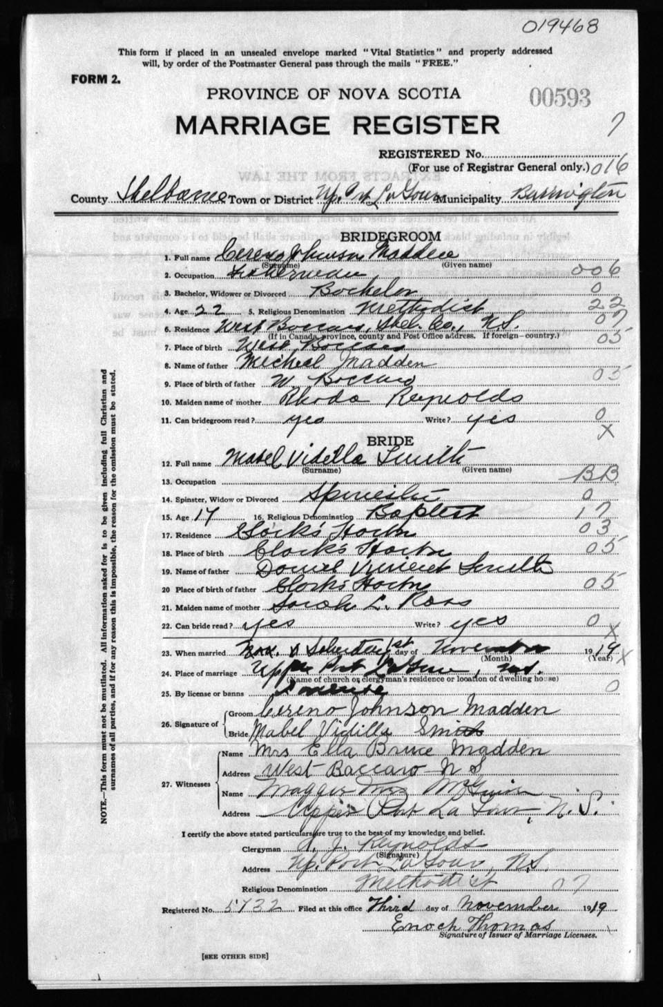 Registration: Year: 1919 number: 19468