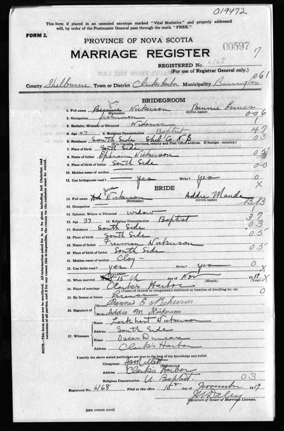 Registration: Year: 1919 number: 19472