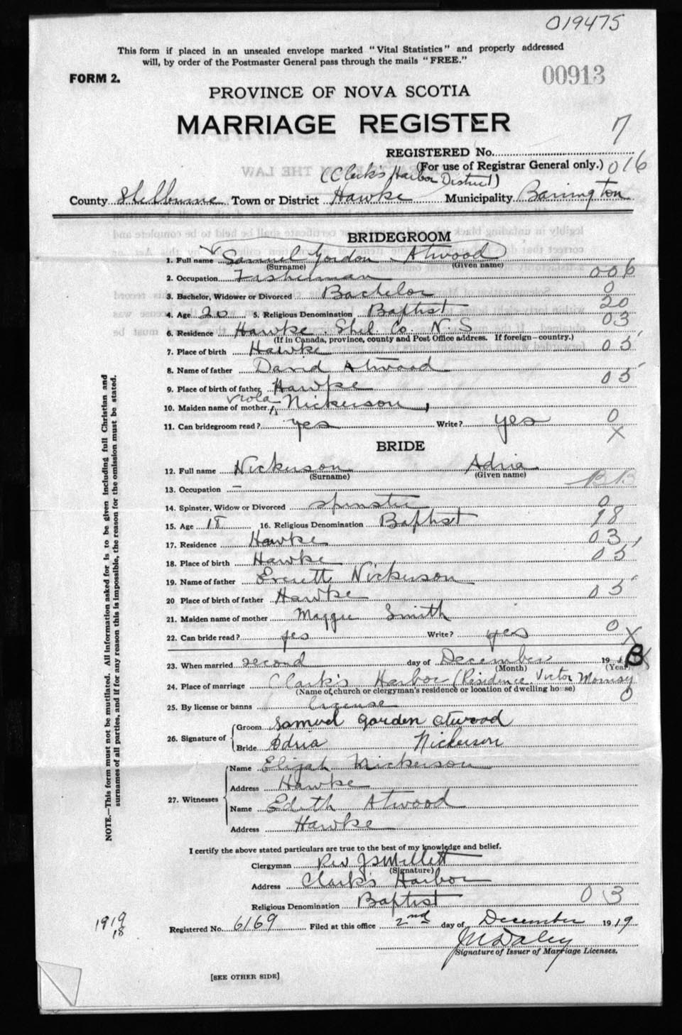 Registration: Year: 1919 number: 19475