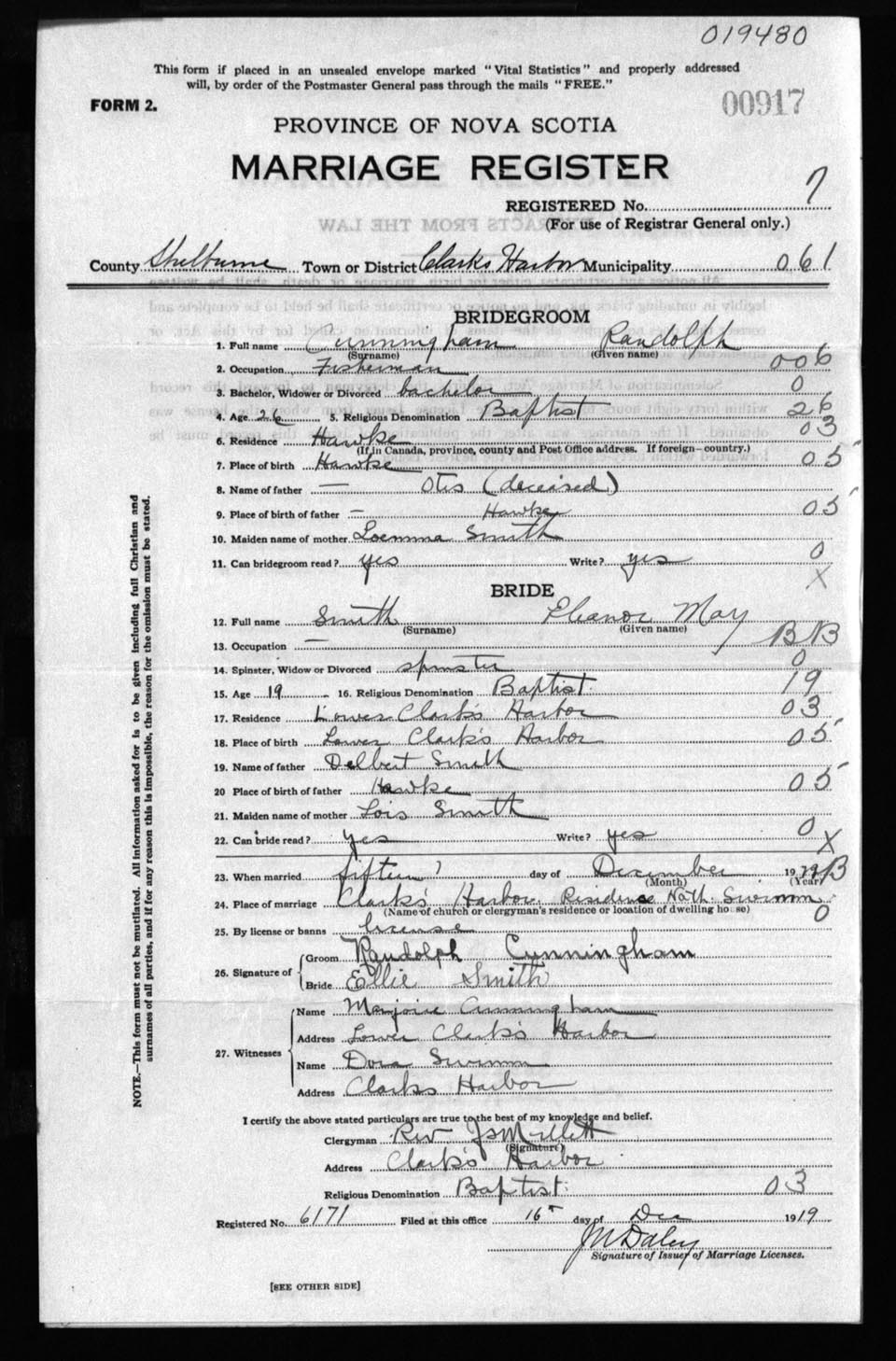 Registration: Year: 1919 number: 19480