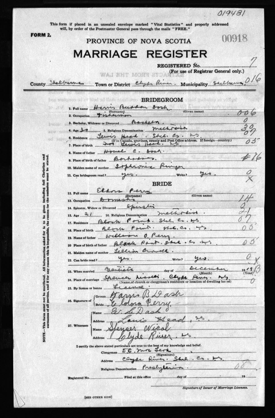 Registration: Year: 1919 number: 19481