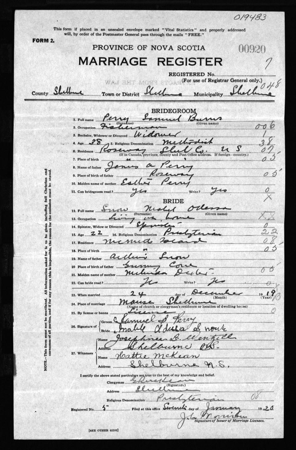 Registration: Year: 1919 number: 19483