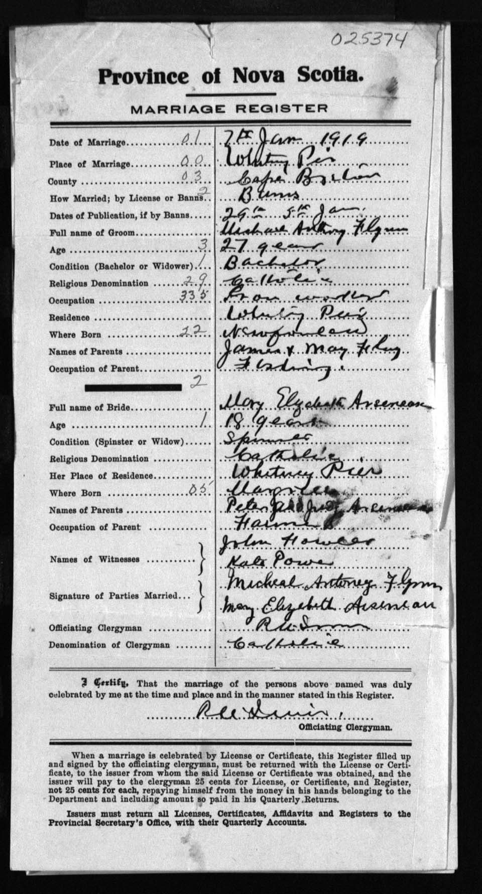 Registration: Year: 1919 number: 25374