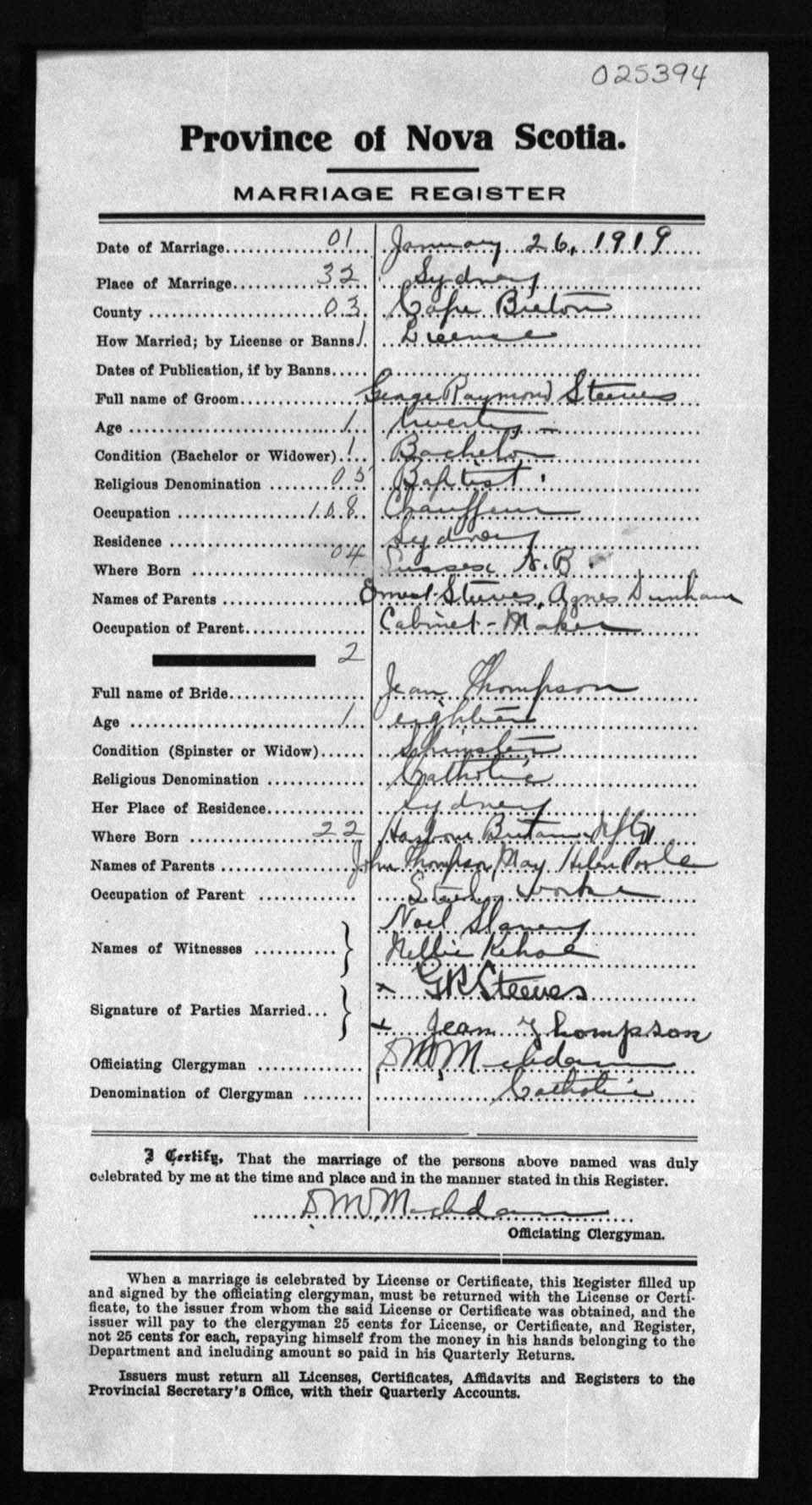 Registration: Year: 1919 number: 25394