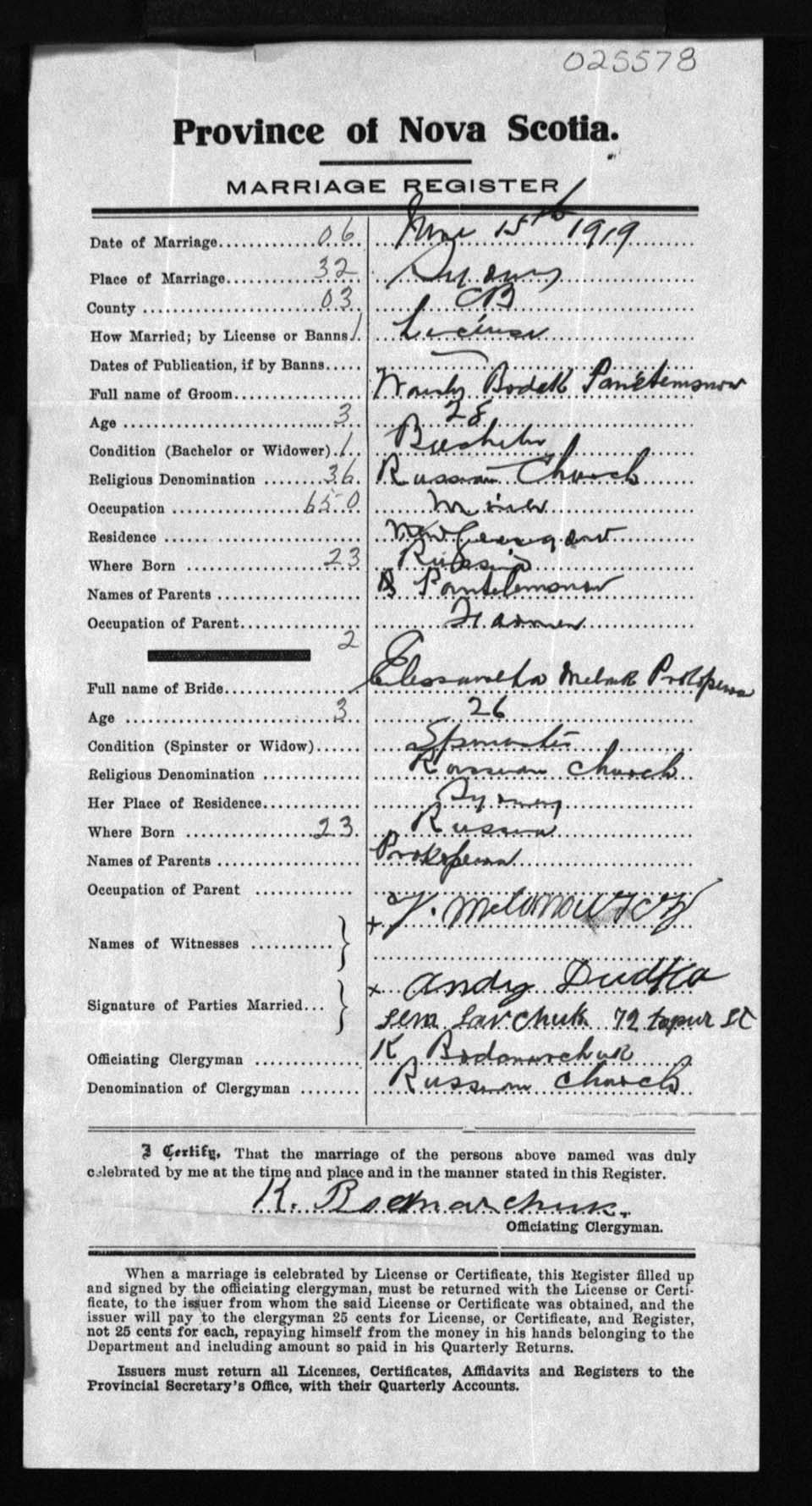 Registration: Year: 1919 number: 25578
