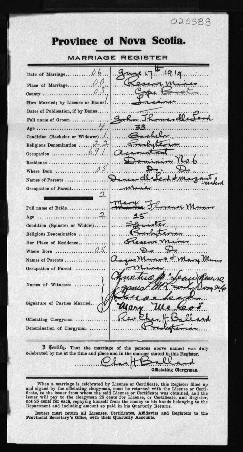 Registration: Year: 1919 number: 25588