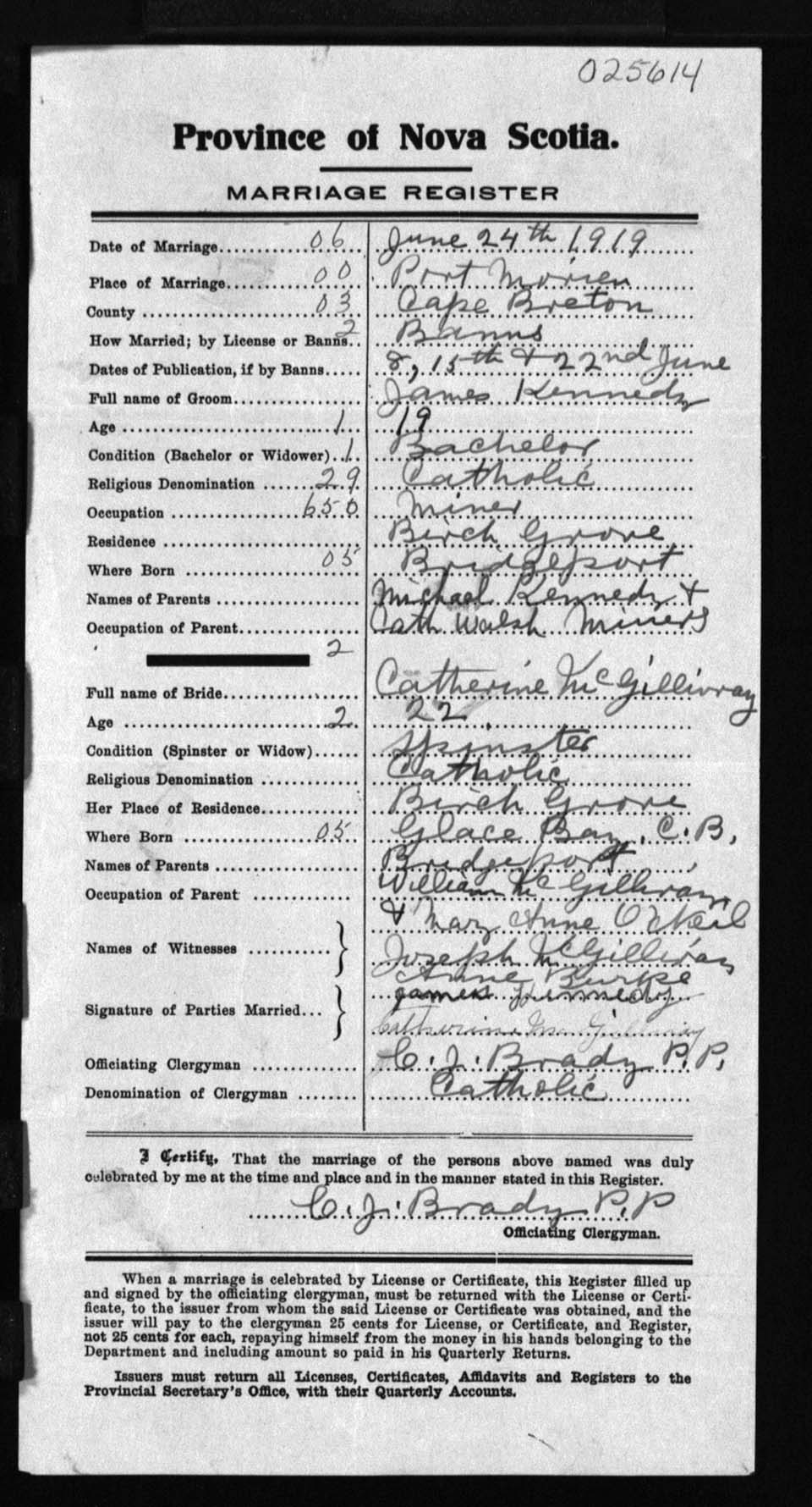 Registration: Year: 1919 number: 25614