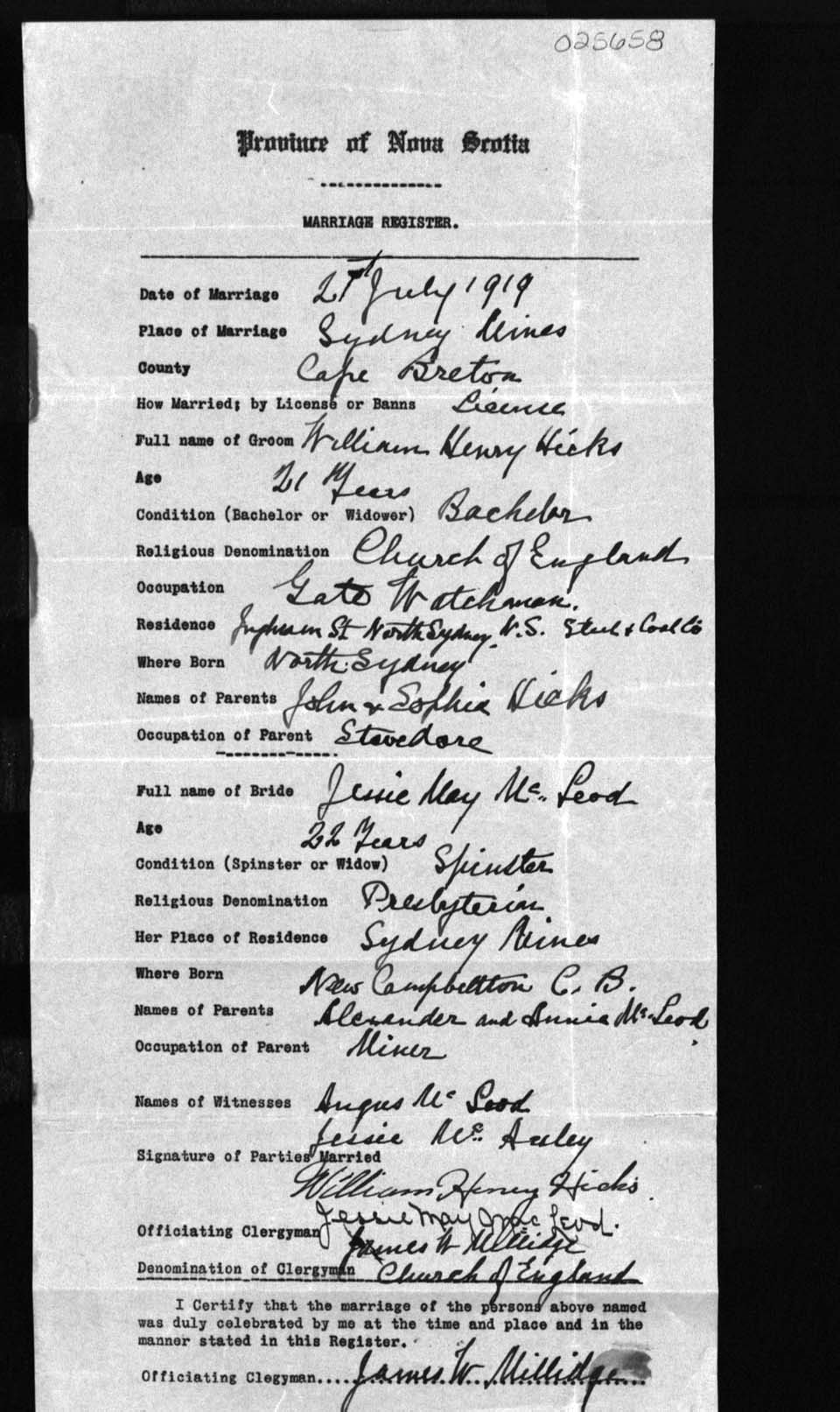 Registration: Year: 1919 number: 25658