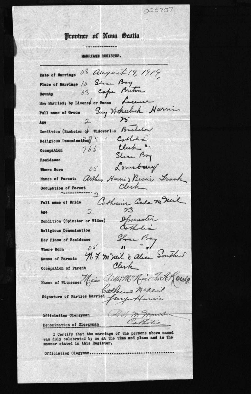 Registration: Year: 1919 number: 25707