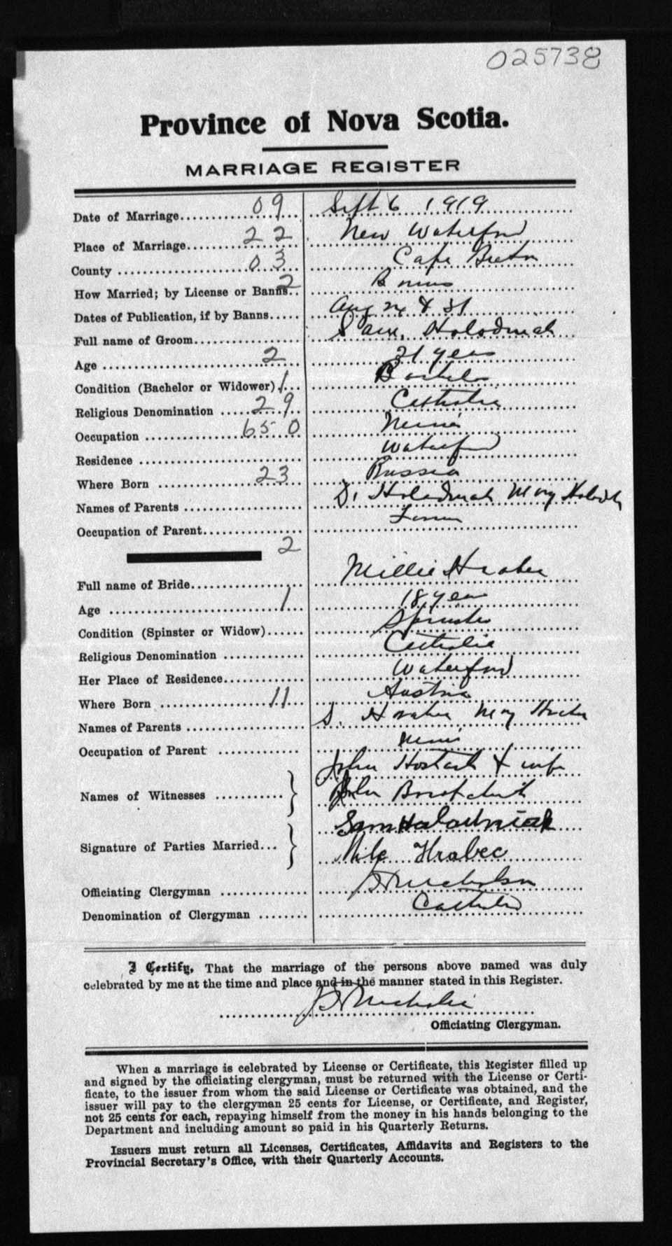 Registration: Year: 1919 number: 25738