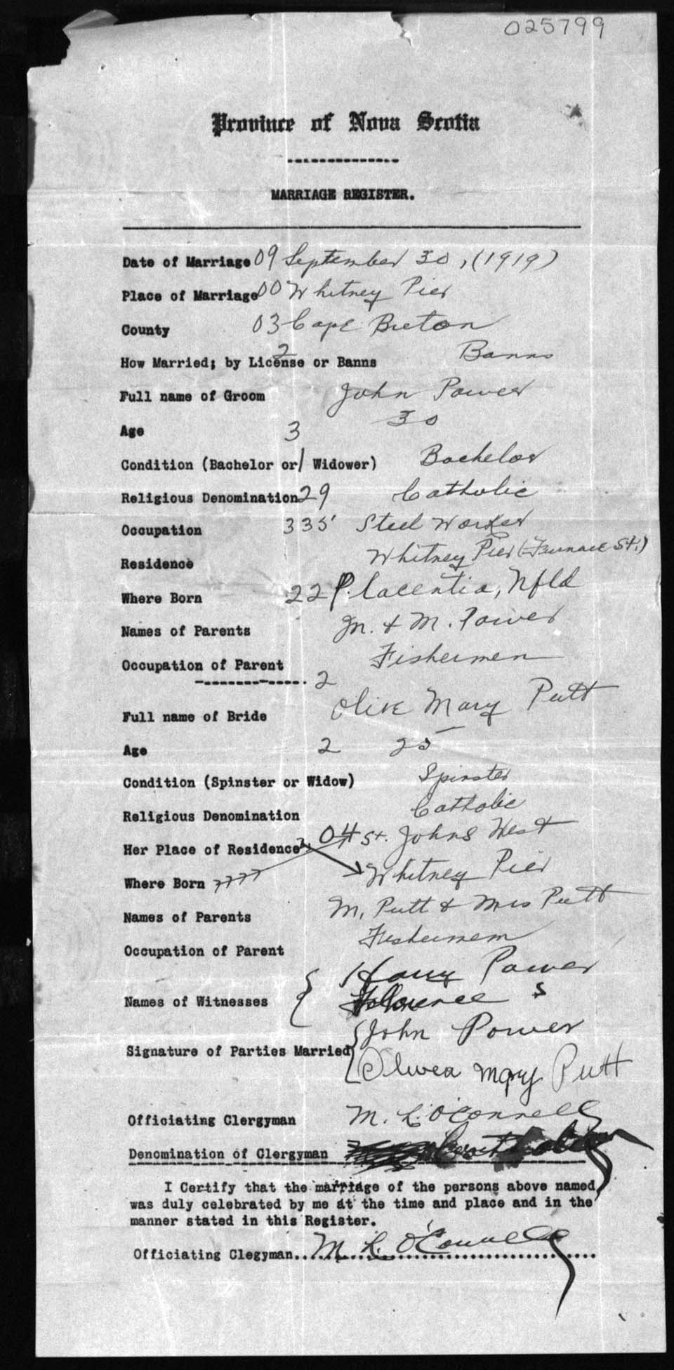 Registration: Year: 1919 number: 25799