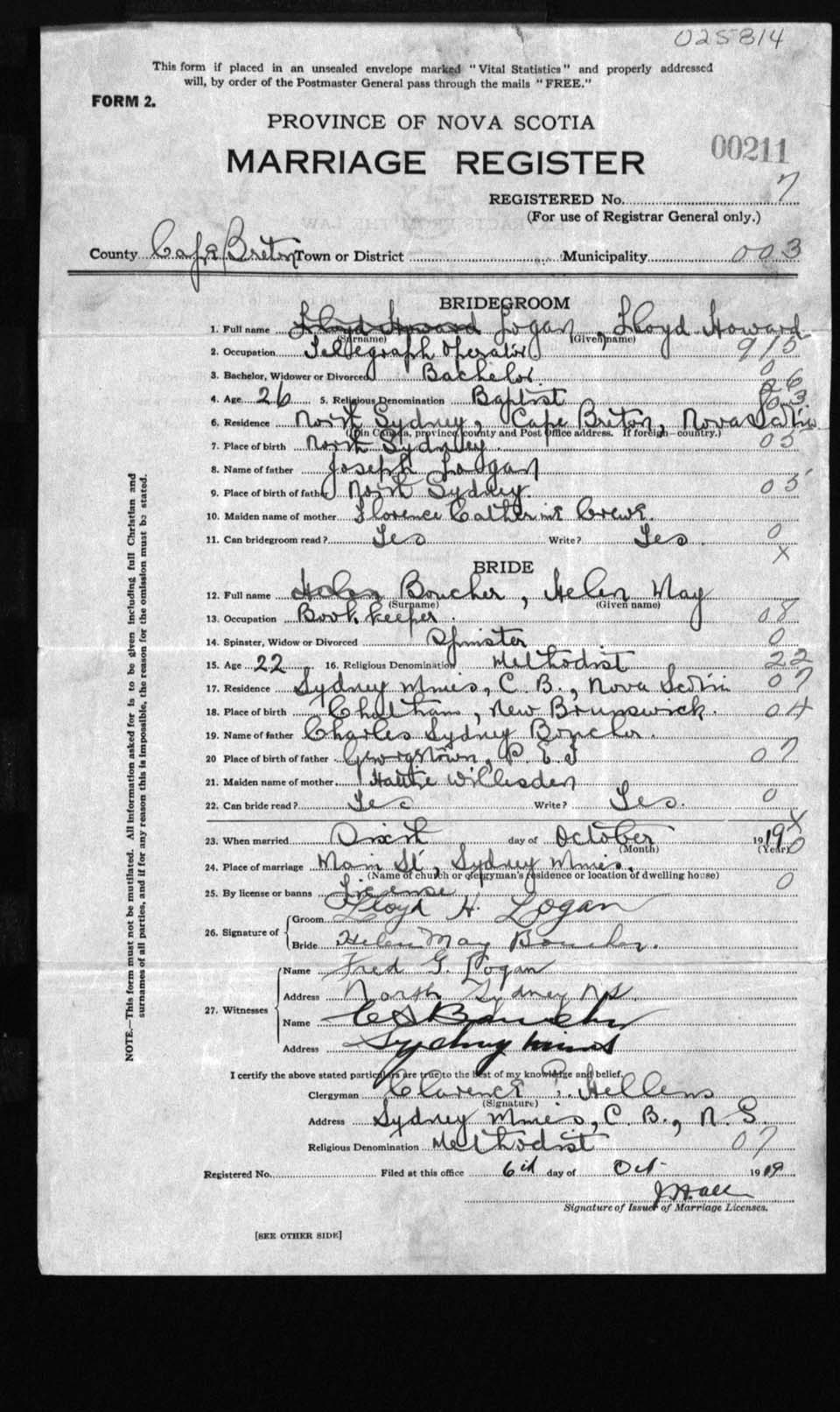 Registration: Year: 1919 number: 25814