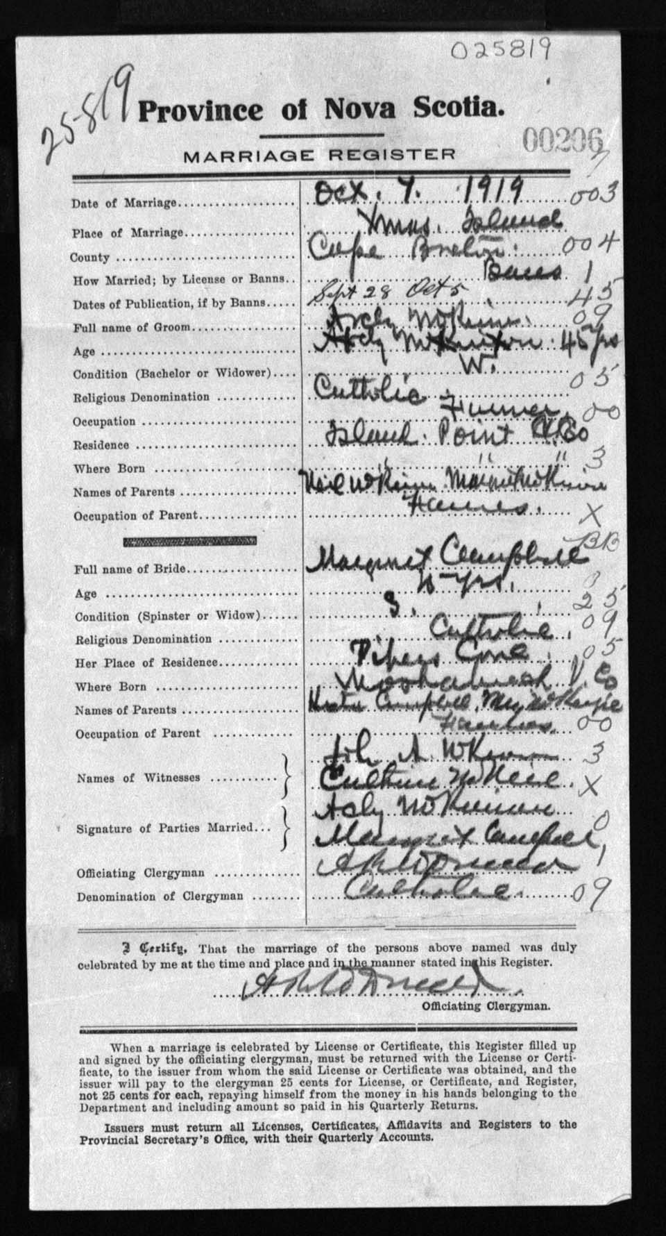 Registration: Year: 1919 number: 25819