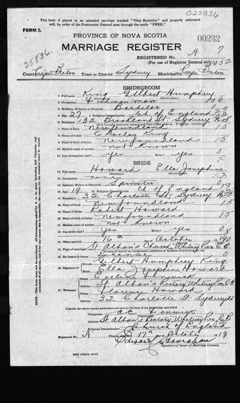 Registration: Year: 1919 number: 25836
