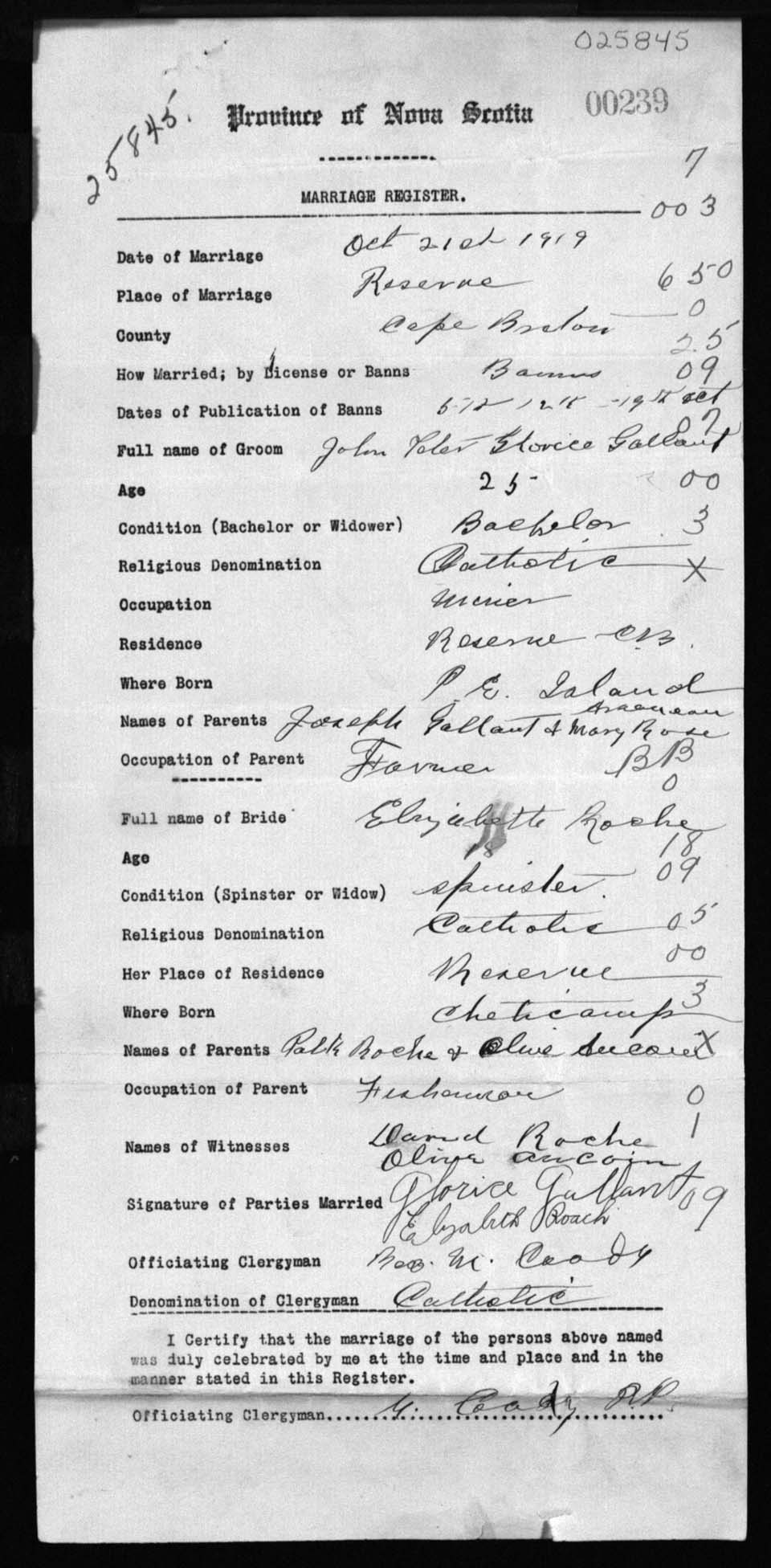 Registration: Year: 1919 number: 25845