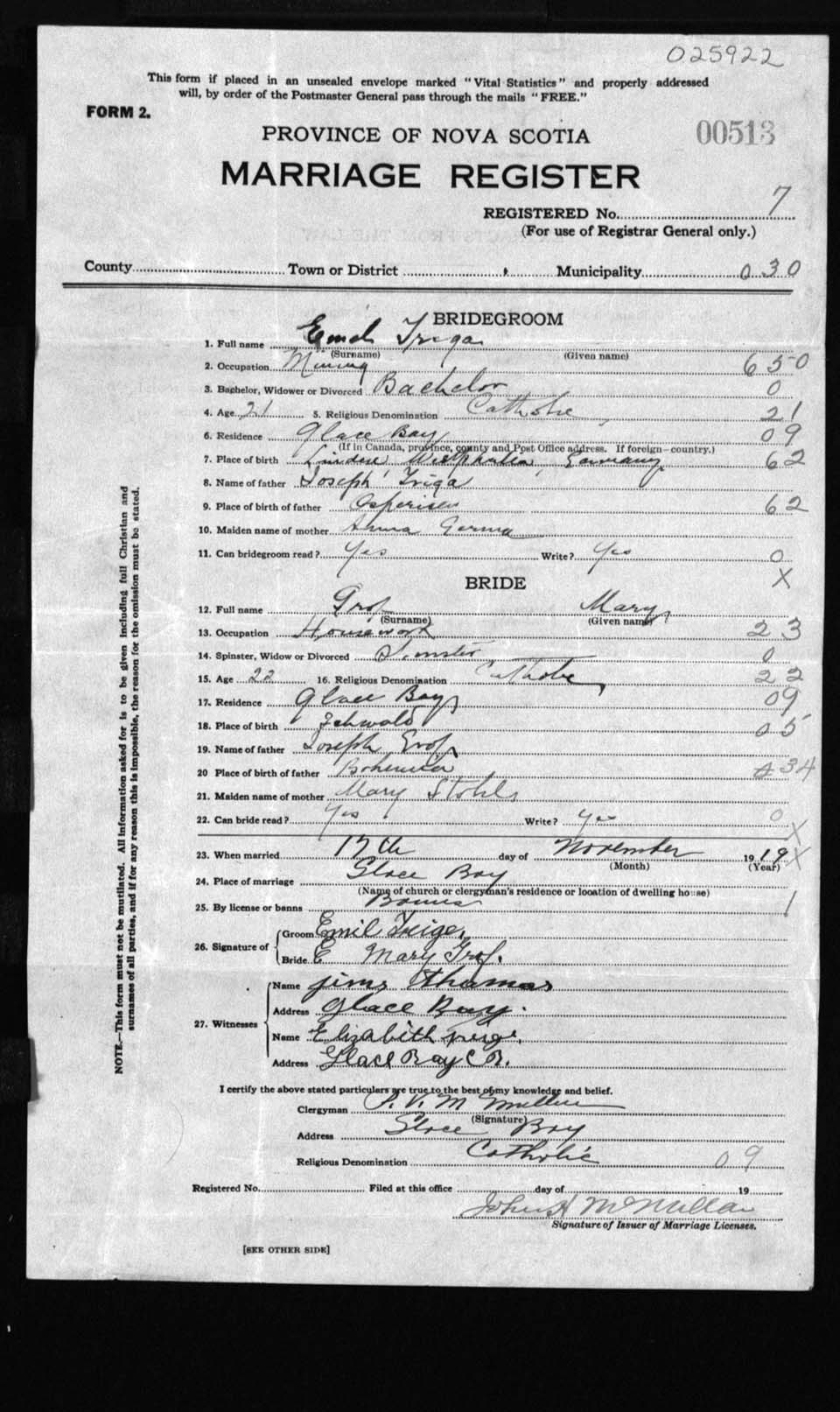 Registration: Year: 1919 number: 25922