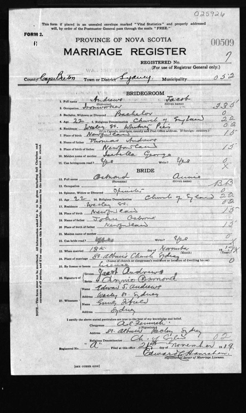 Registration: Year: 1919 number: 25926