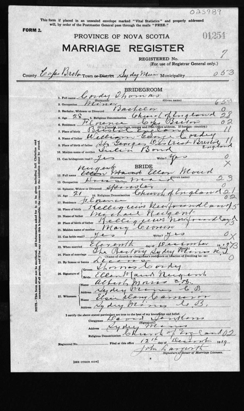 Registration: Year: 1919 number: 25989