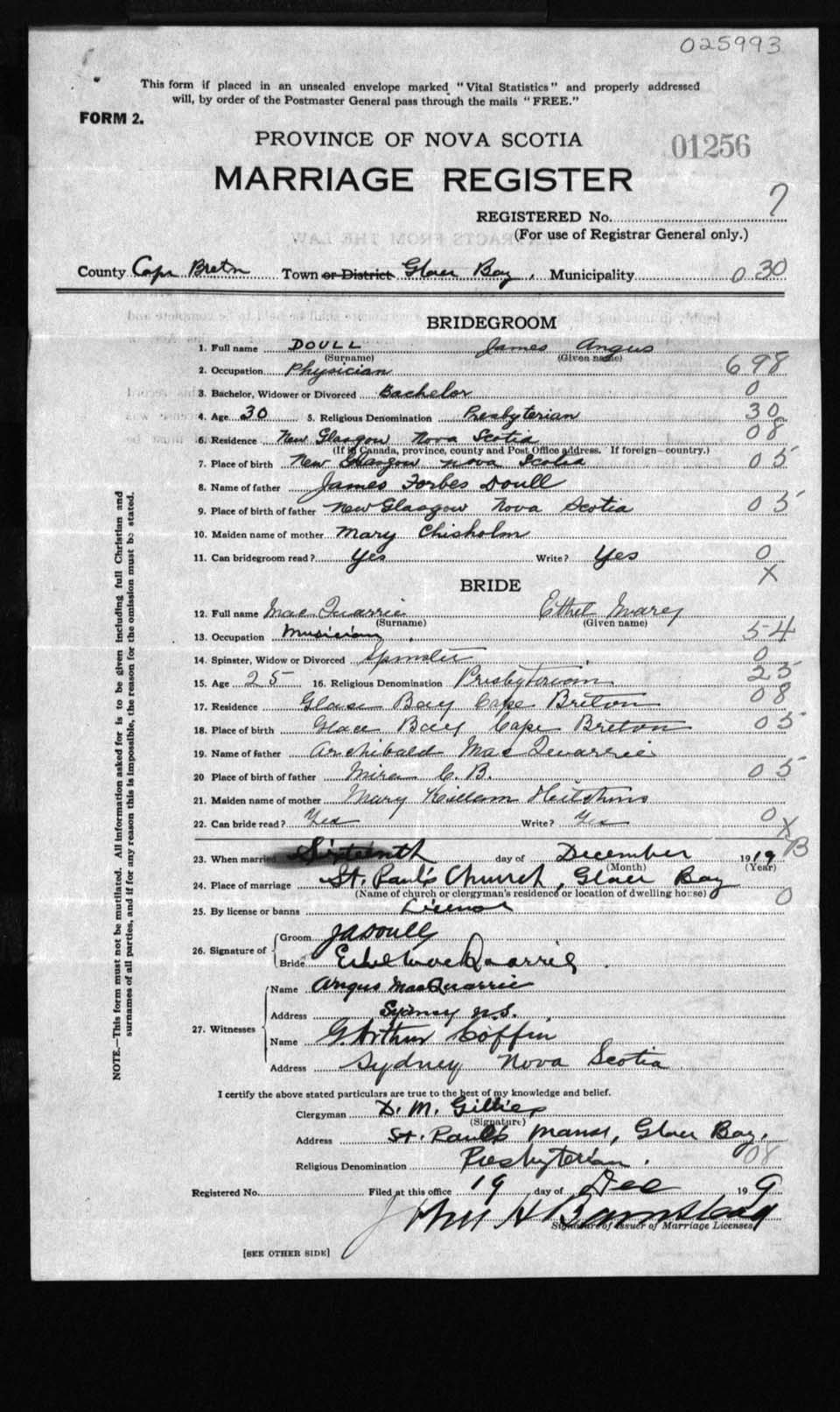 Registration: Year: 1919 number: 25993