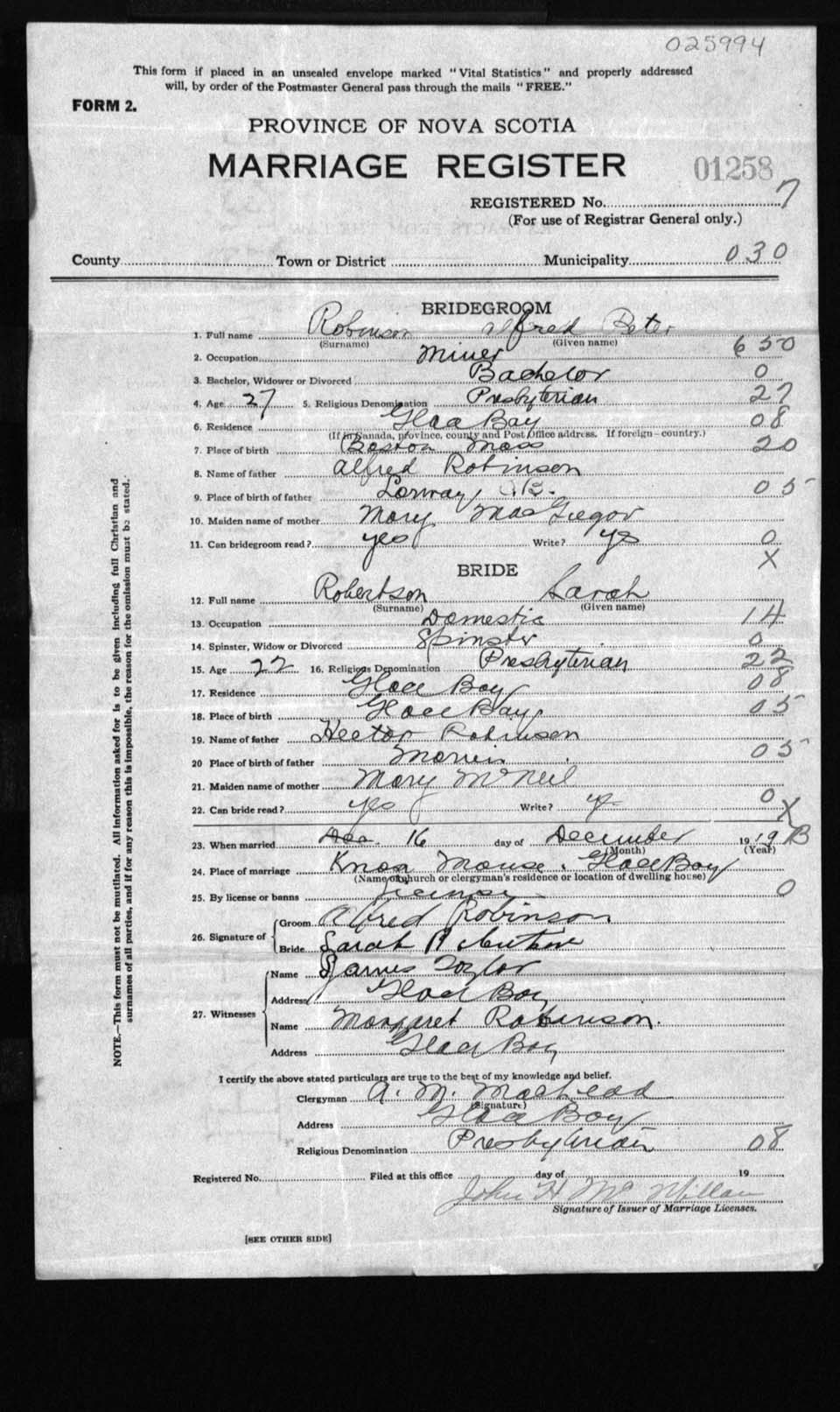 Registration: Year: 1919 number: 25994