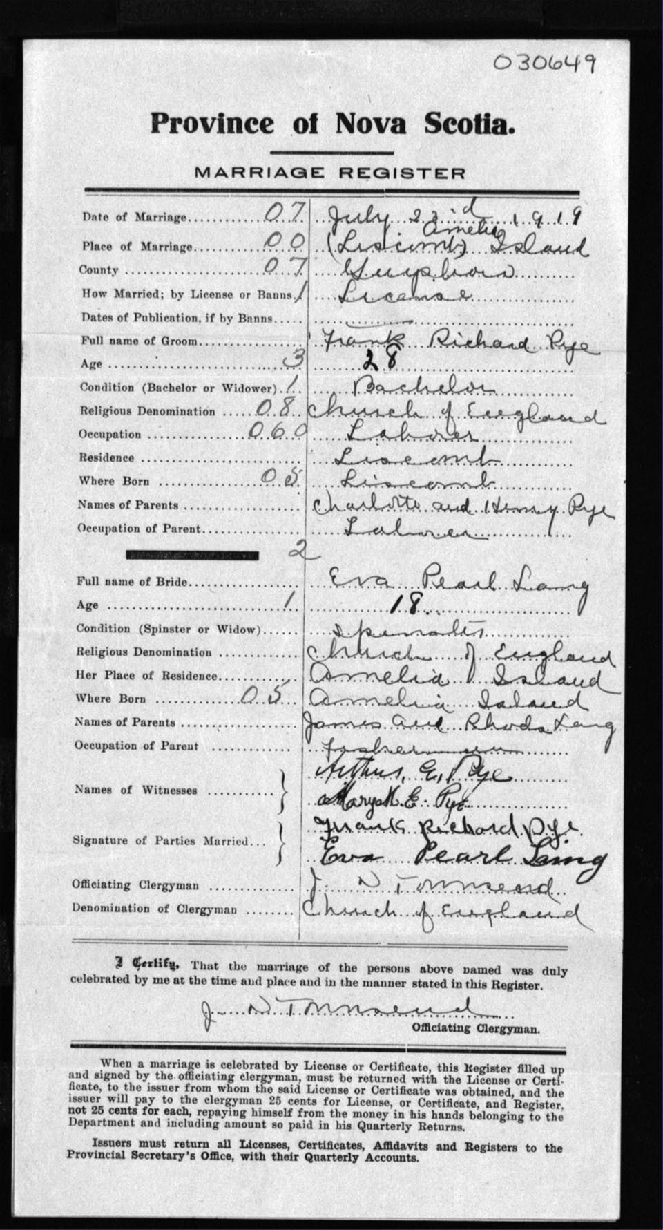 Registration: Year: 1919 number: 30649