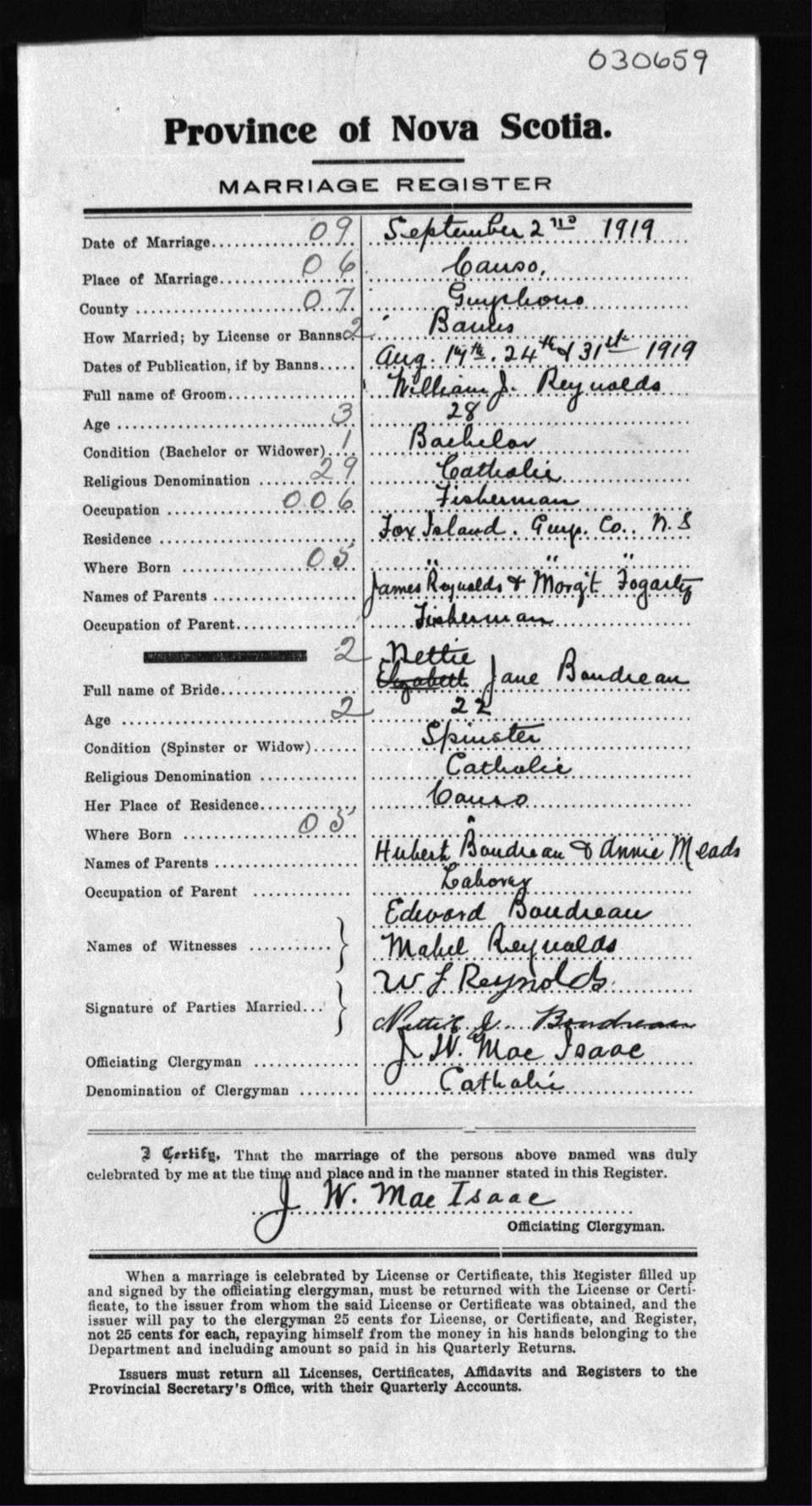 Registration: Year: 1919 number: 30659