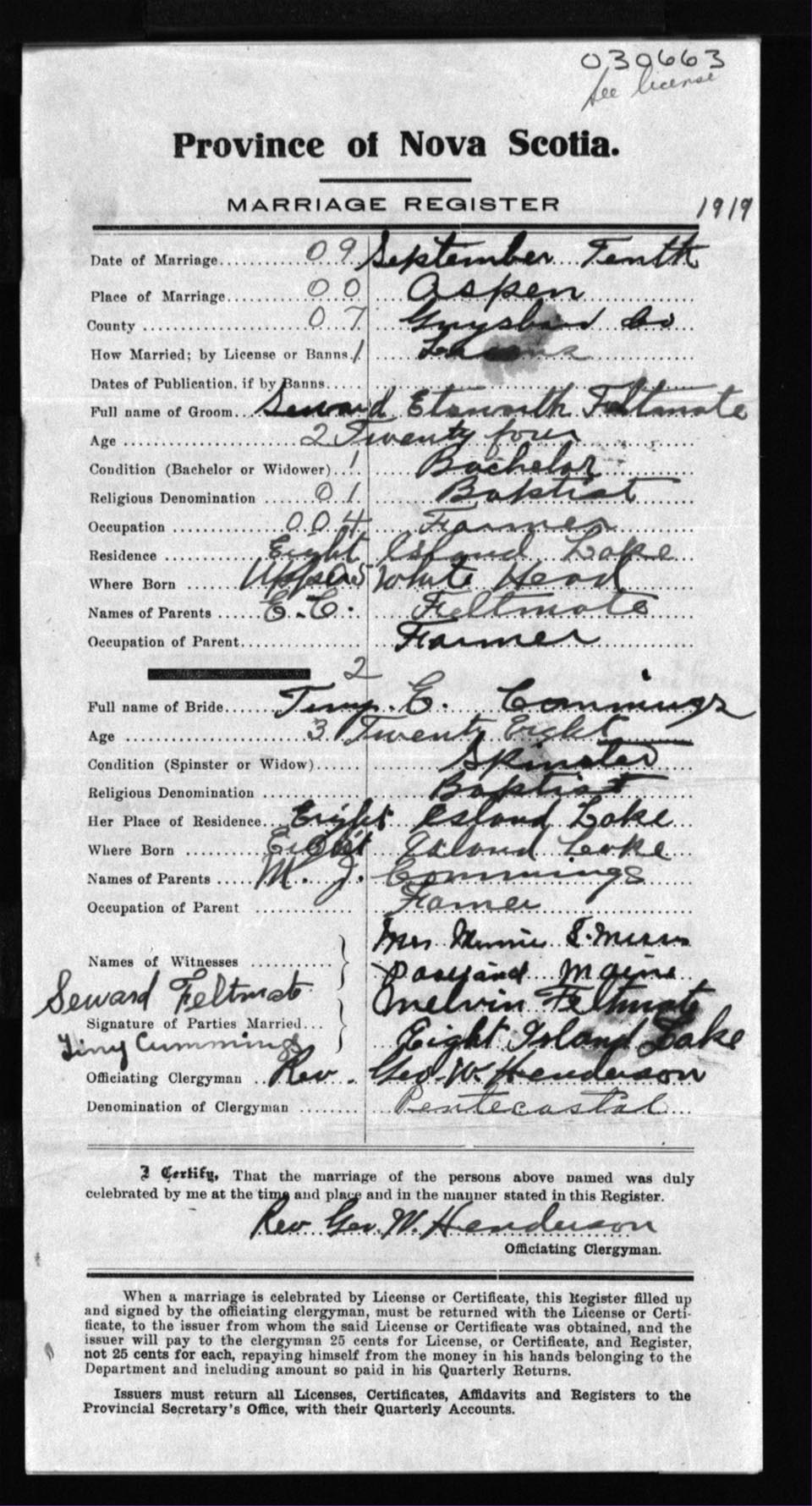 Registration: Year: 1919 number: 30663