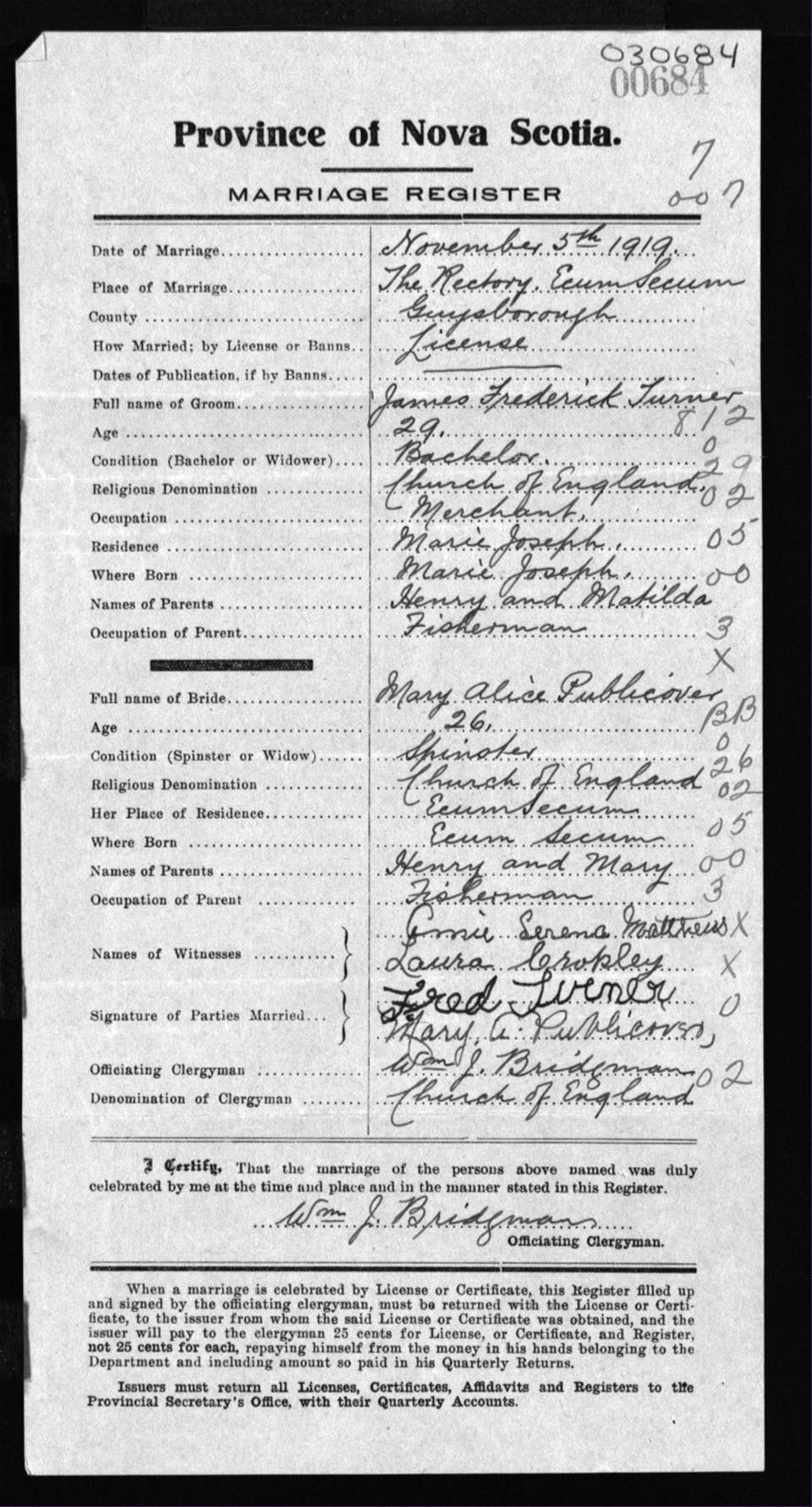 Registration: Year: 1919 number: 30684