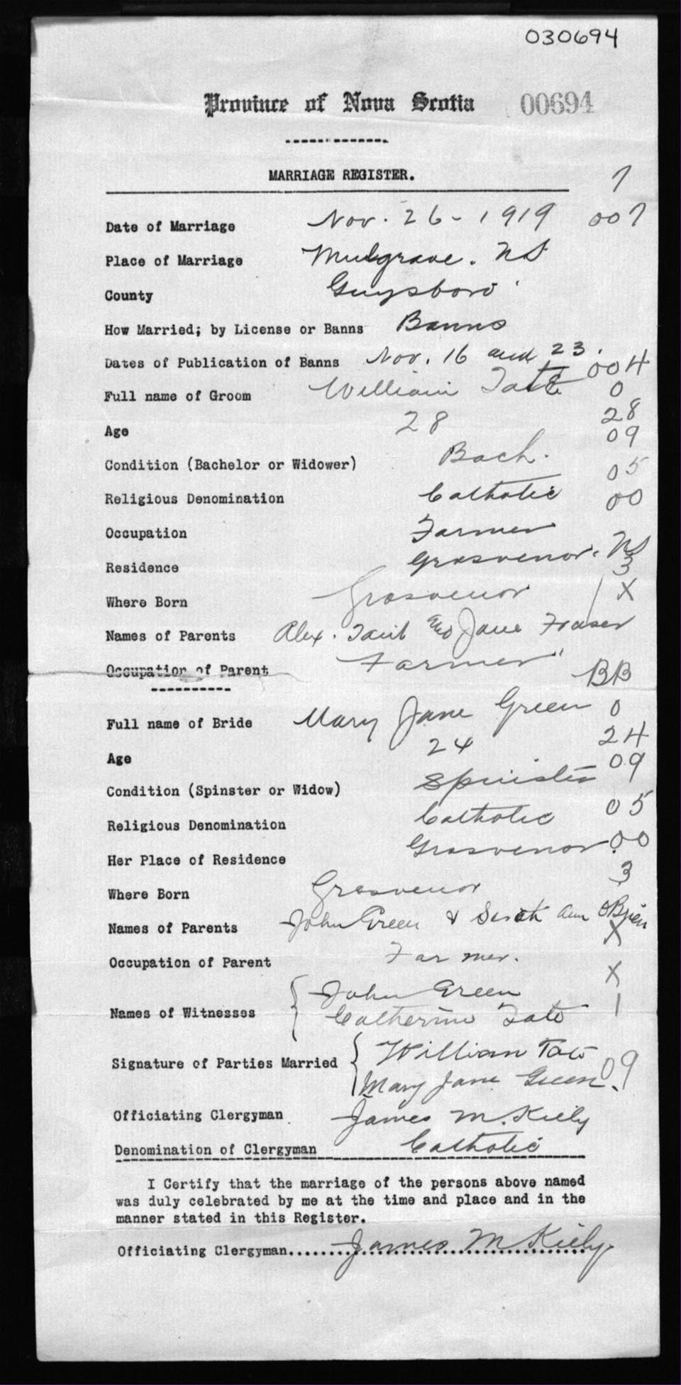 Registration: Year: 1919 number: 30694
