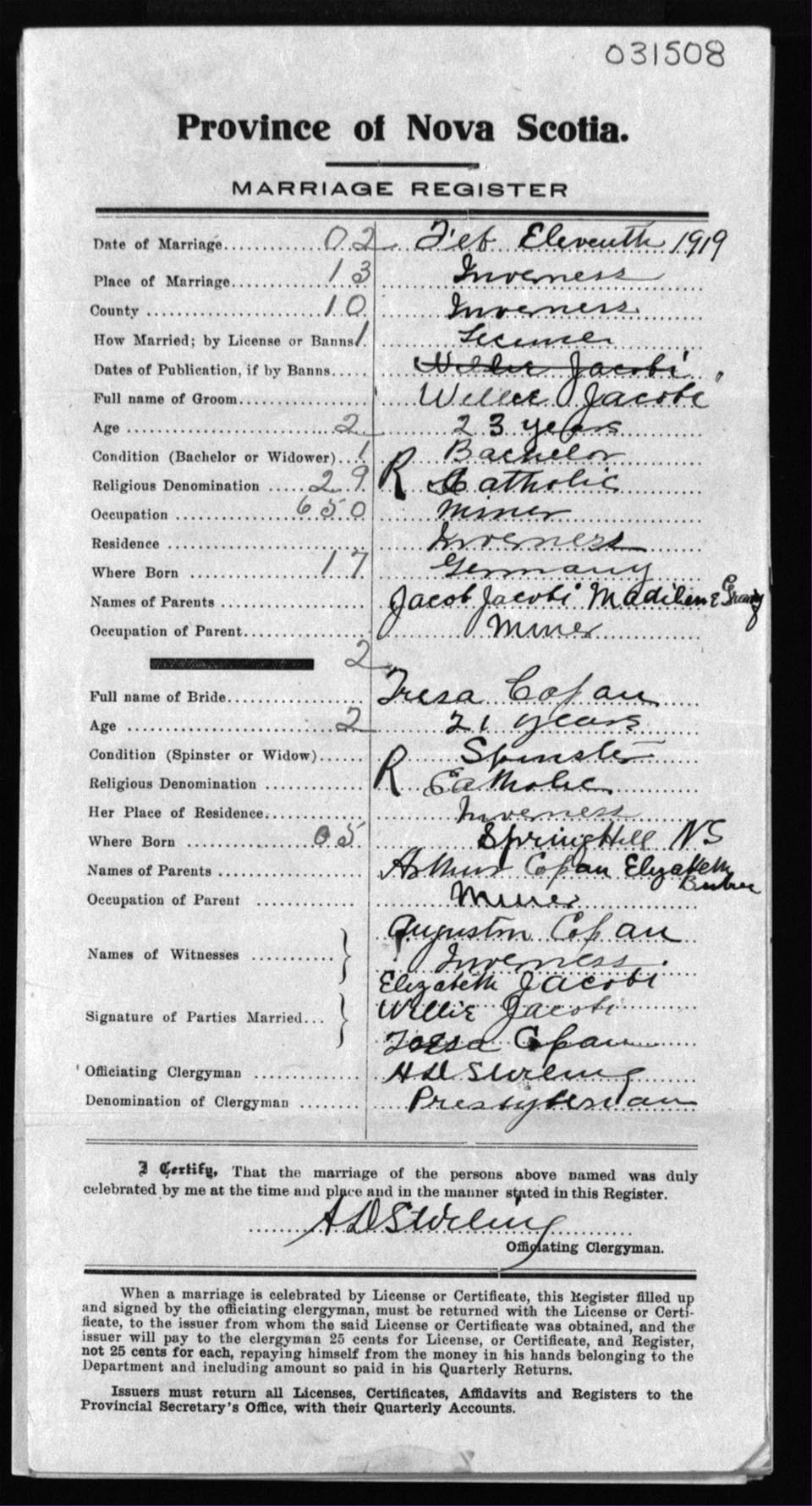 Registration: Year: 1919 number: 31508