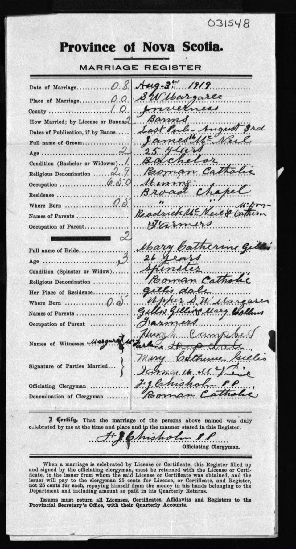 Registration: Year: 1919 number: 31548