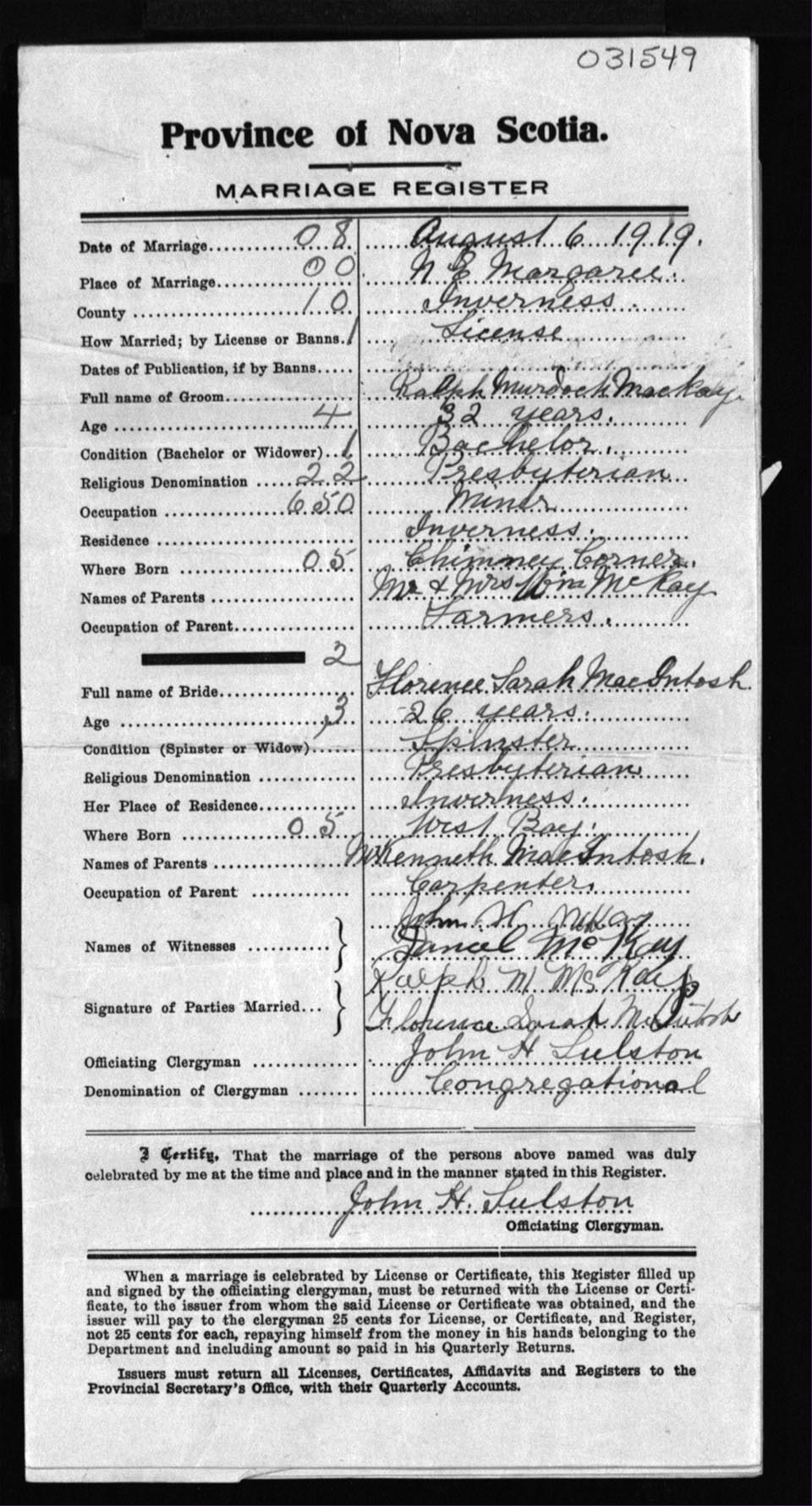Registration: Year: 1919 number: 31549