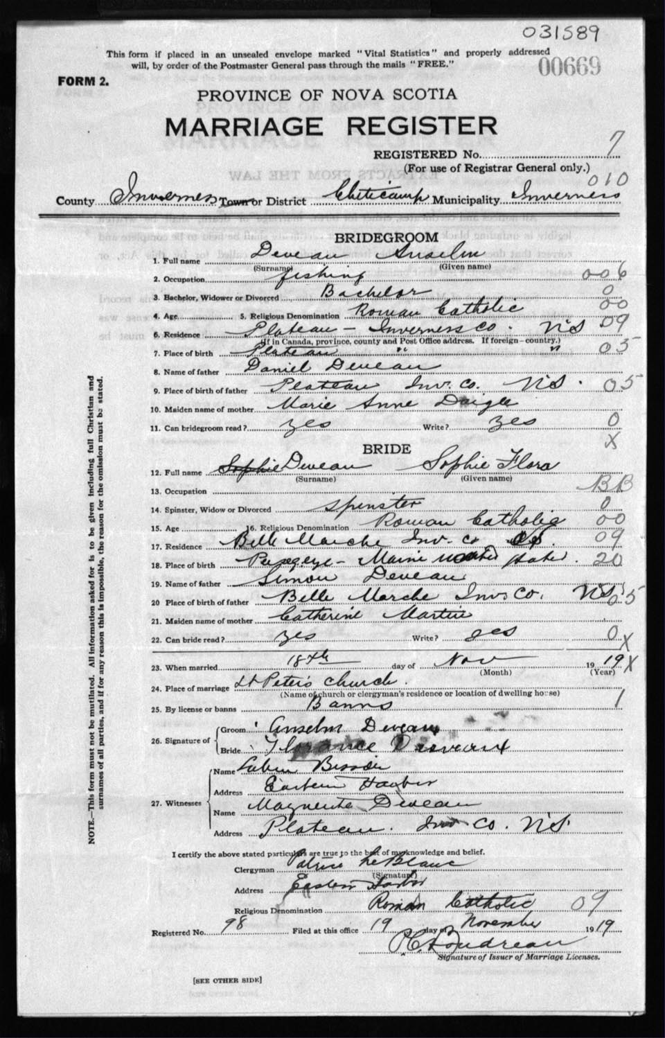 Registration: Year: 1919 number: 31589