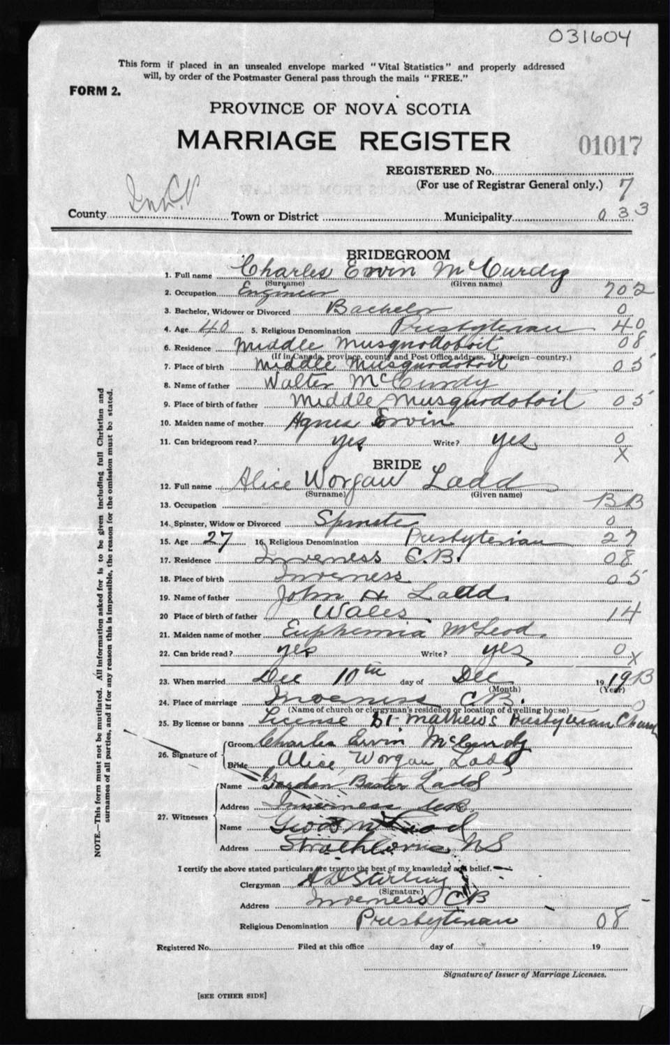 Registration: Year: 1919 number: 31604