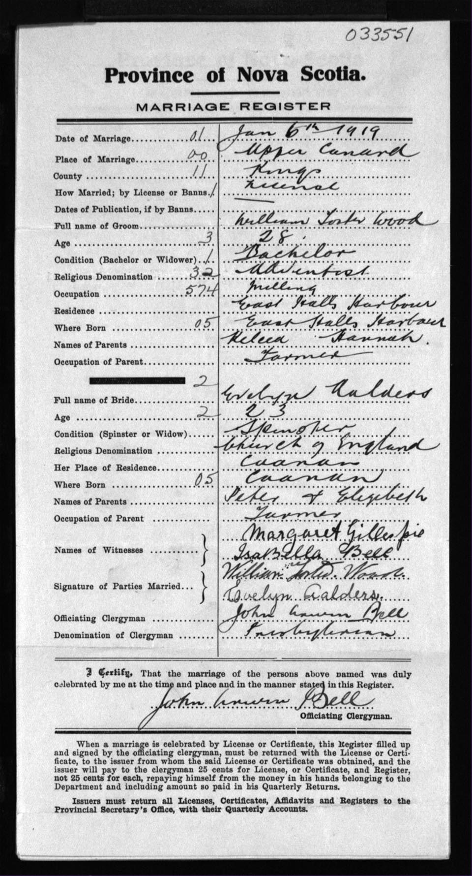 Registration: Year: 1919 number: 33551