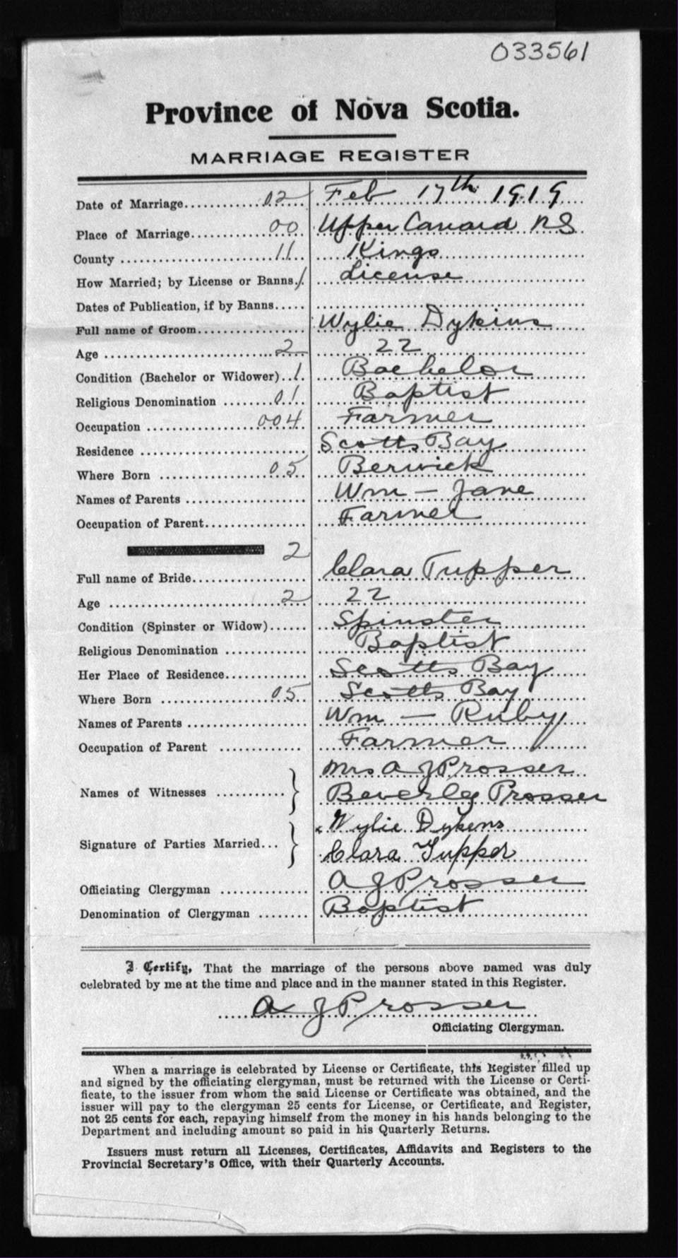 Registration: Year: 1919 number: 33561