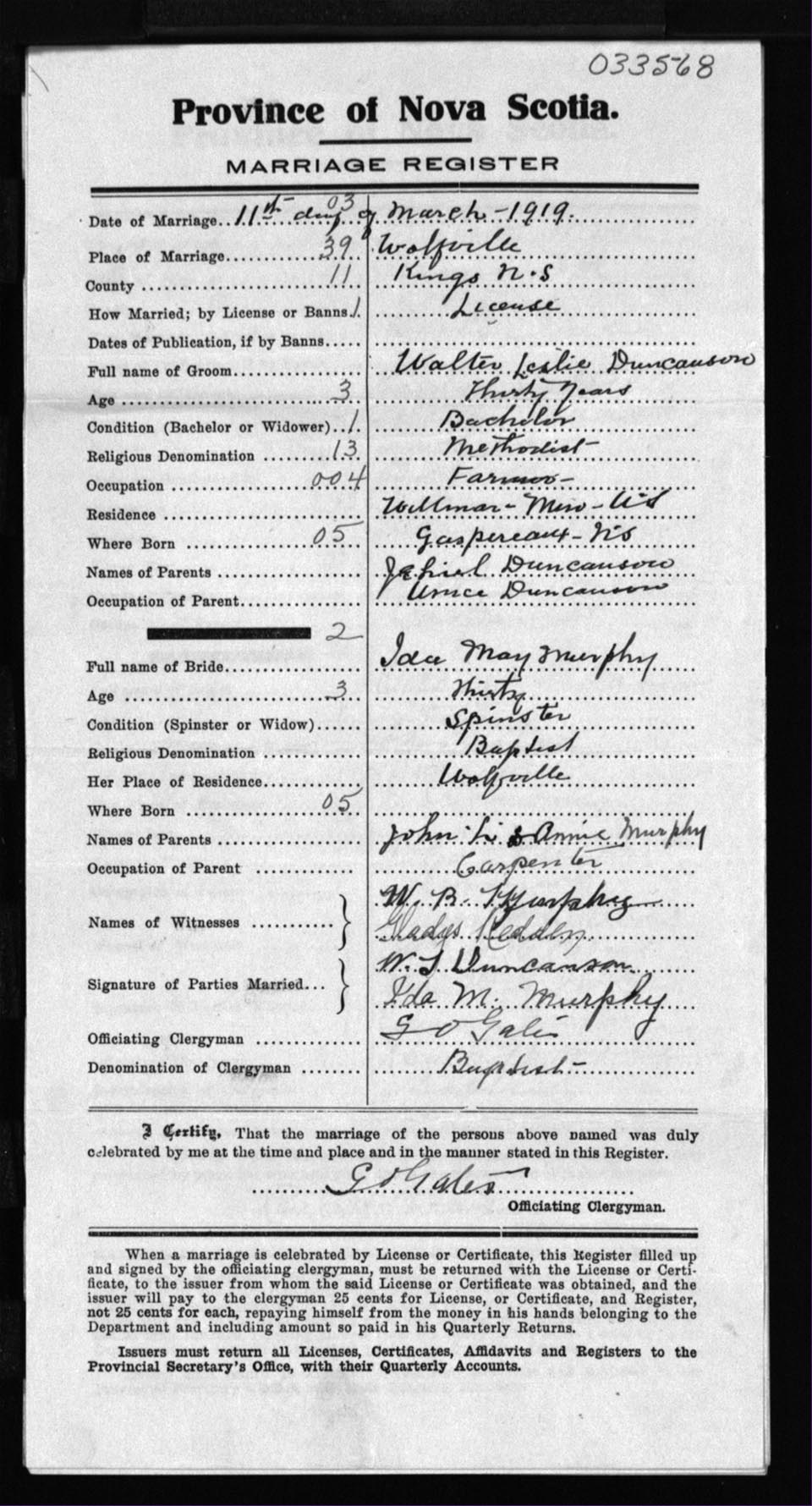 Registration: Year: 1919 number: 33568