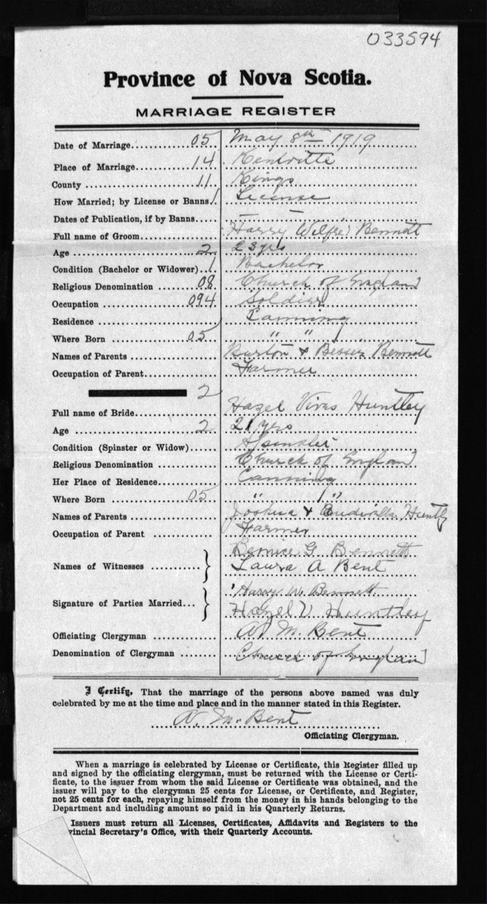 Registration: Year: 1919 number: 33594
