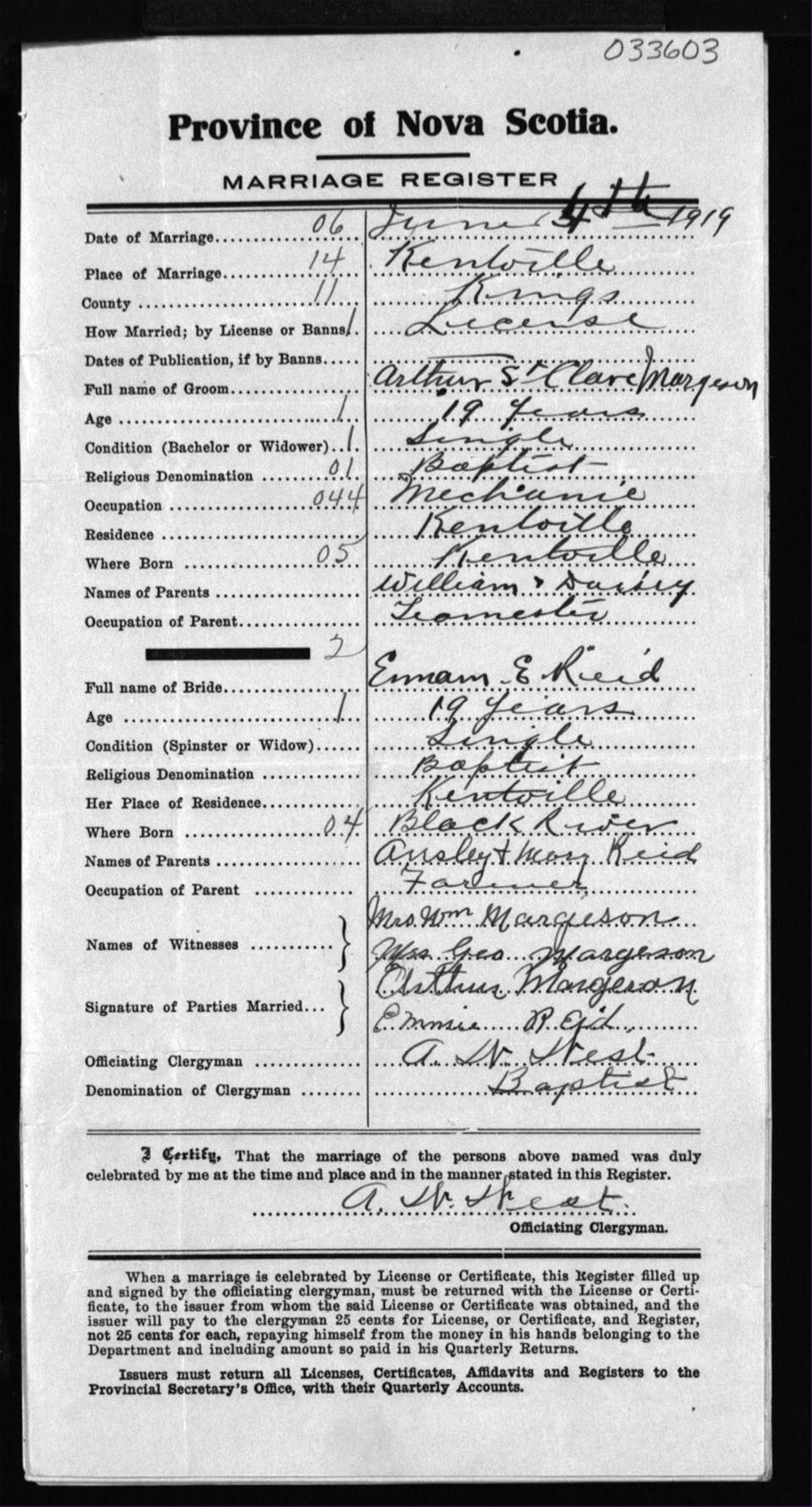 Registration: Year: 1919 number: 33603