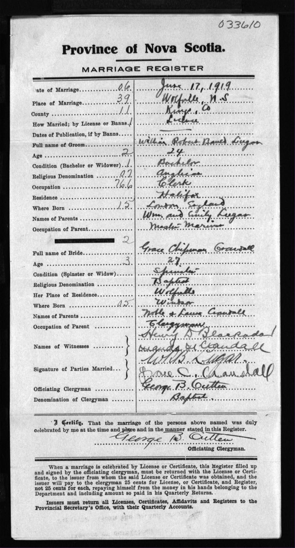Registration: Year: 1919 number: 33610